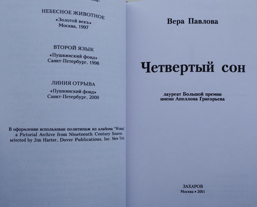 Тираж 3000 экз. 112 стр. В. Павлова является лауреатом Большой премии Аполлона Григорьева. Стильная обложка напоминает оформление акунинских книг. Об этой книге можно говорить и спорить, есть в ней некая скандальность, вызов и эпатаж, который все чаще в последнее время называют свободой. Автор, безусловно, безмерно талантлив.