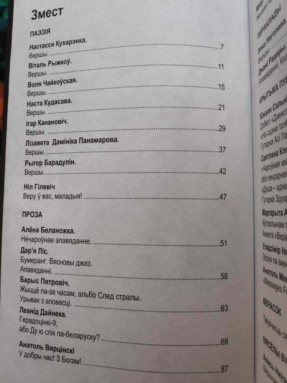 Настасся Кухарэнка, Віталь Рыжкоў, Воля Чайкоўская, Наста Кудасава, Ігар Канановіч, Лізавета Дамініка Панамарова, Рыгор Барадулін, Ніл Гілевіч