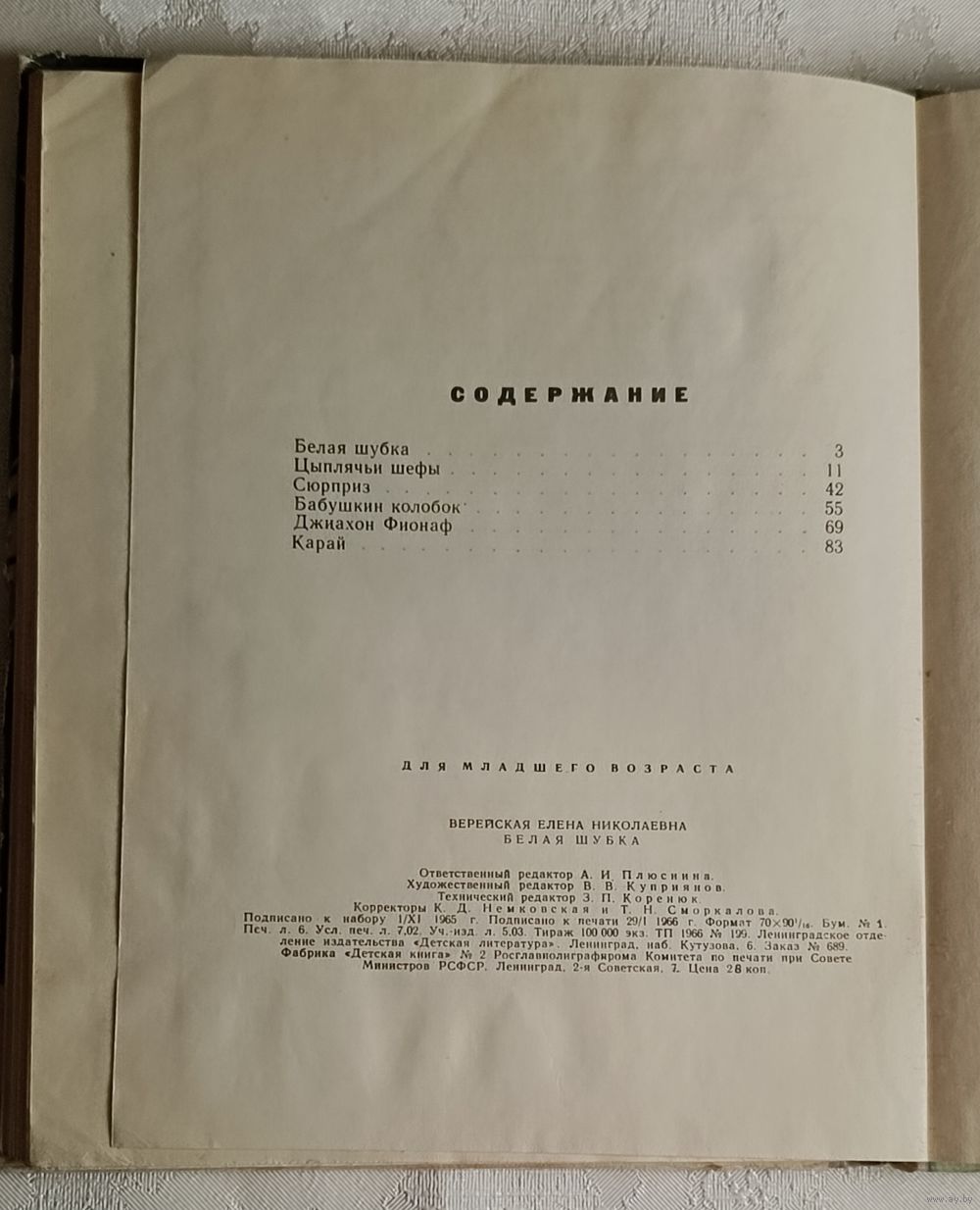 Верейская Елена. Белая шубка. Ленинград. Детская литература, 1966, стр. 96, твердый переплет, чуть увеличенный формат.