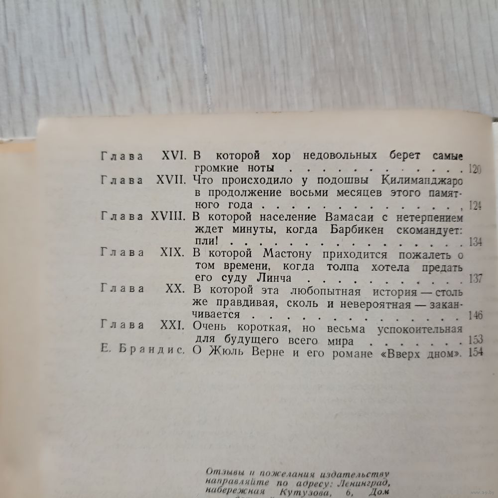 В романе `Вверх дном` члены Пушечного клуба, пытаясь растопить полярные льды, устраивают выстрел из гигантской пушки, но в результате ошибки в математических расчетах моря затопляют континенты, а горы проваливаются под землю. Тираж 75000 экз.