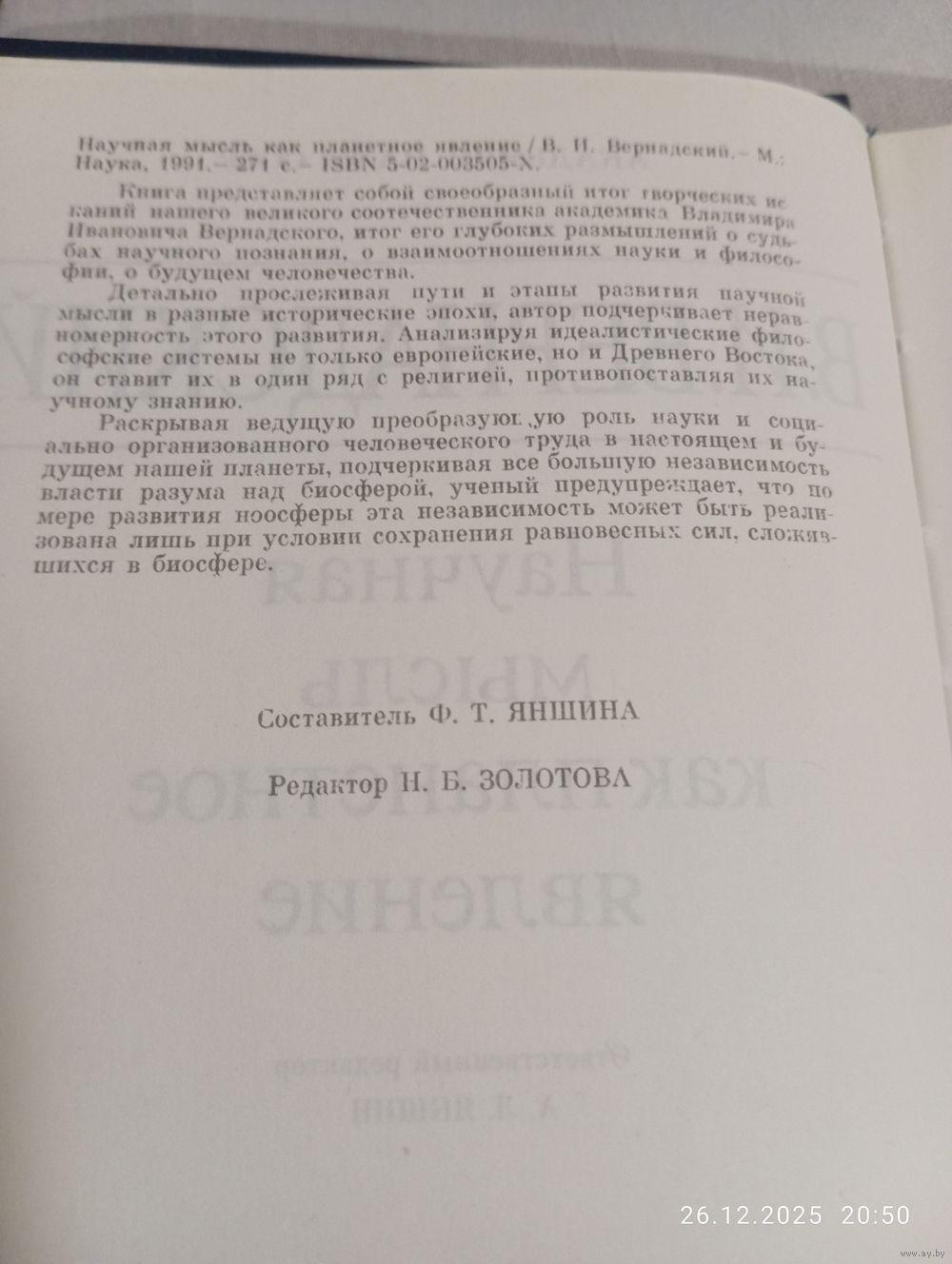 Вернадский В. Научная мысль как планетное явление. М. Наука 1991. В прекрасном состоянии, тв переплет. 271 с. Возможность отправки Белпочтой, полная предоплата
