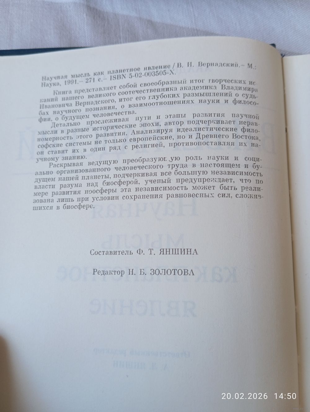 Вернадский В. Научная мысль как планетное явление. М. Наука 1991. В прекрасном состоянии, тв переплет. 271 с. Возможность отправки Белпочтой, полная предоплата