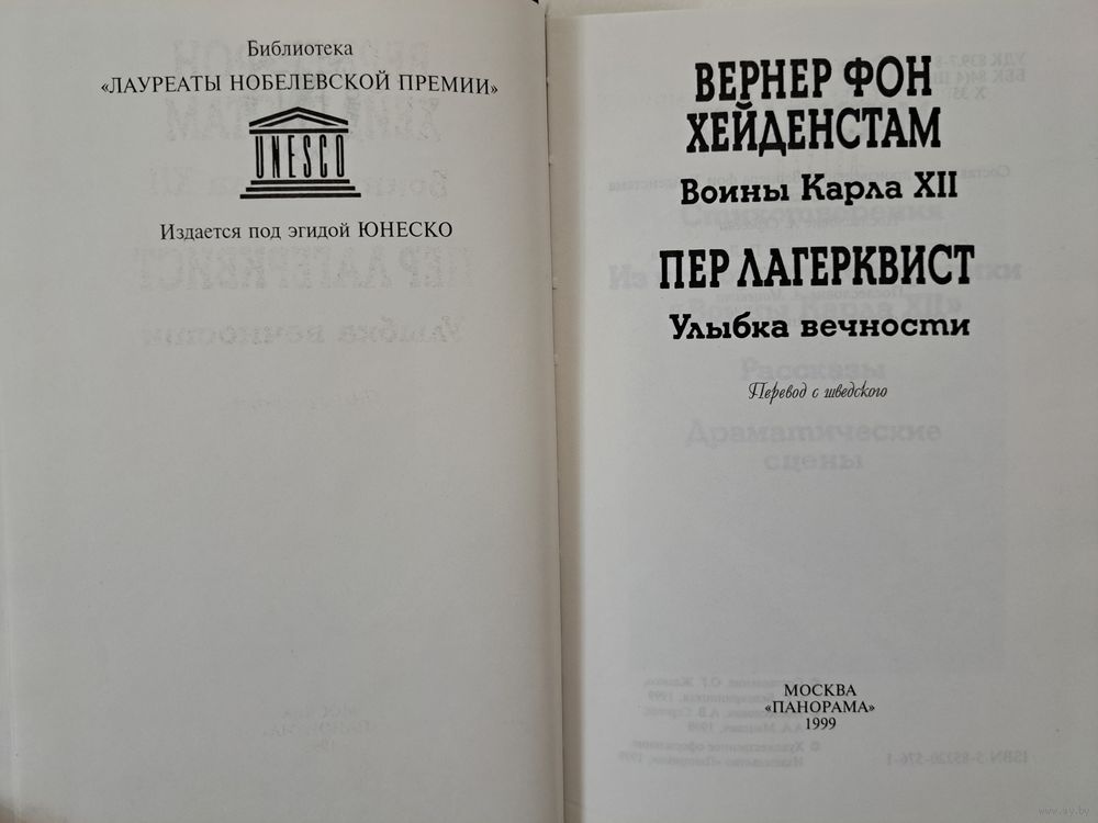 Вернер фон Хейденстам Войны Карла XIII. Пер Лагерквист Улыбка вечности. Лауреаты нобелевской премии. Издательство Панорама