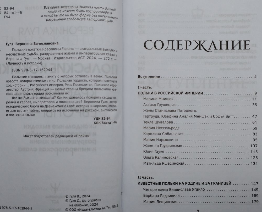 Большой формат. Тираж 2000 экз. 272 стр. Польские женщины, память о которых осталась в веках. Польская красота, которая изменила мир. Польская гордость, которая повернула ход истории... Восточная Европа — место столкновения великих держав. Российская империя, Речь Посполитая, Польское королевство, Австрия, Франция – целые страны бредили польскими красавицами, целые нации проклинали их! Кто же были эти женщины? Как они покоряли сердца королей и героев, императоров и полководцев? Вероника Гуля, автор исторического блога на Дзене, откроет для вас эти тайны, опираясь на источники на русском, английском и польском языках.