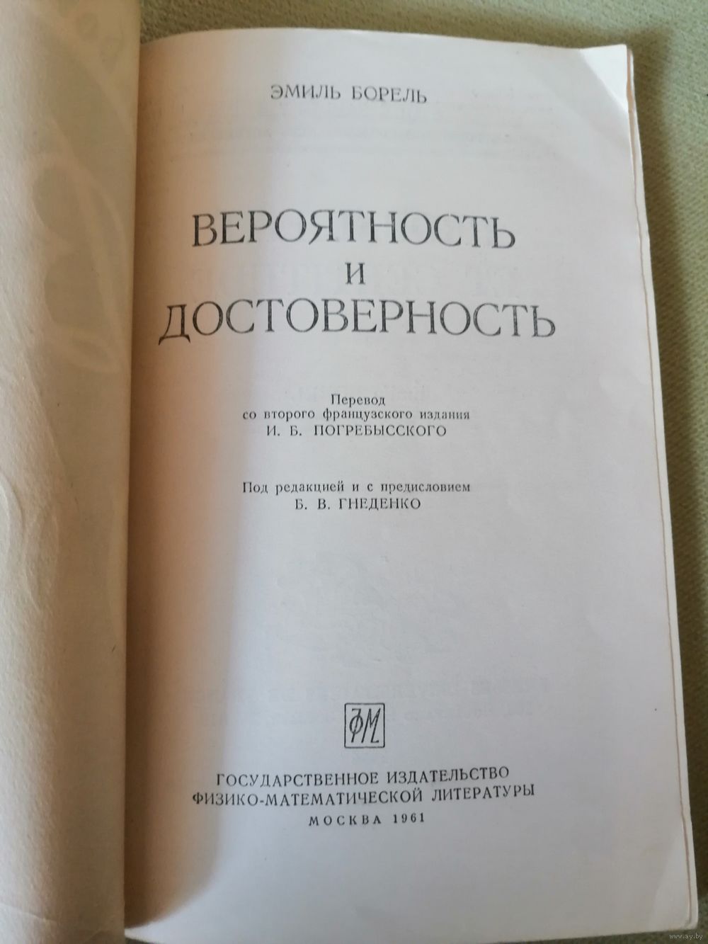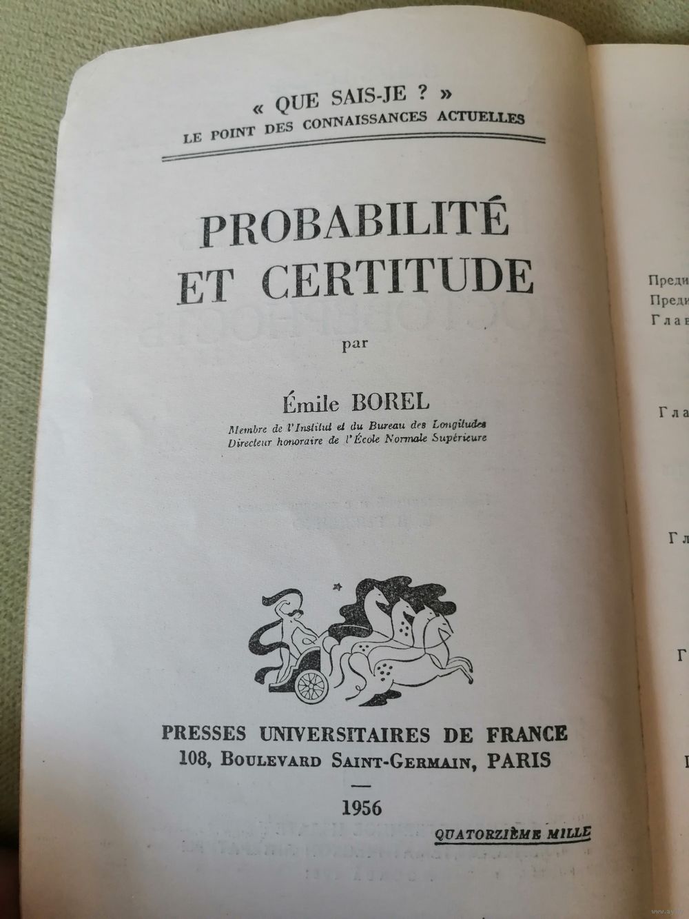 Книга Эмиля Бореля «Вероятность и достоверность» (фр. Les probabilités et la vie) — классический труд по теории вероятностей, впервые изданный в 1916 году (русский перевод 1961 года). Автор исследует философский вопрос перехода малых вероятностей в практическую невозможность и высокой вероятности — в достоверность.