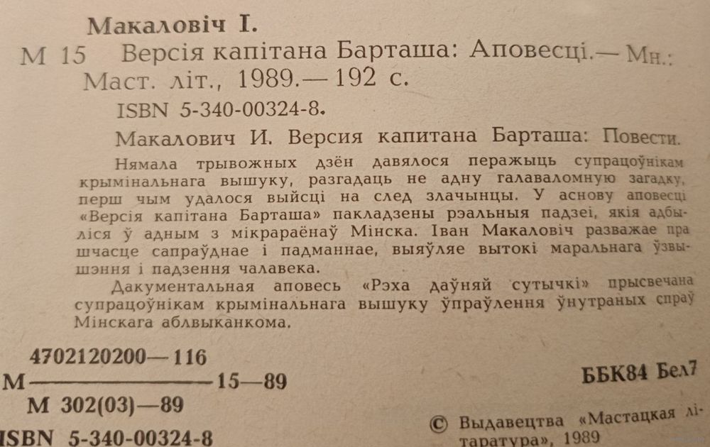 Версия капитана Барташа .Макалович Иван.(на белорусском)