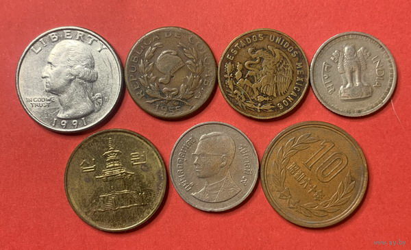 Весь мир без Европы, 7 разных монет из 7 стран - 3