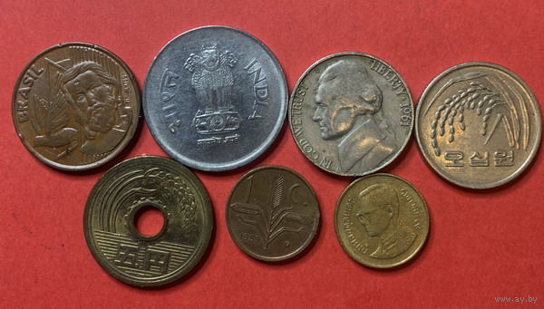 Весь мир без Европы, 7 разных монет из 7 стран - 4