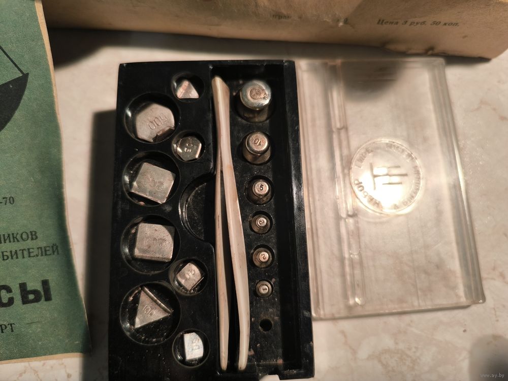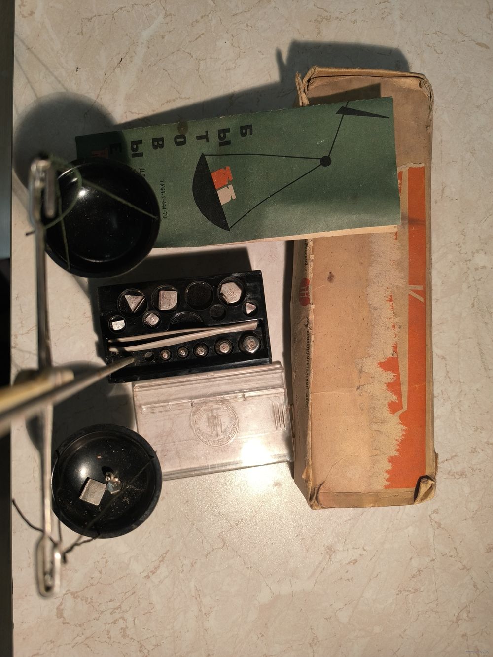 В состав лота входят: сами весы, короб-основание весов с набором разновесов и пинцетом, паспорт на весы и оригинальная упаковочная коробка.