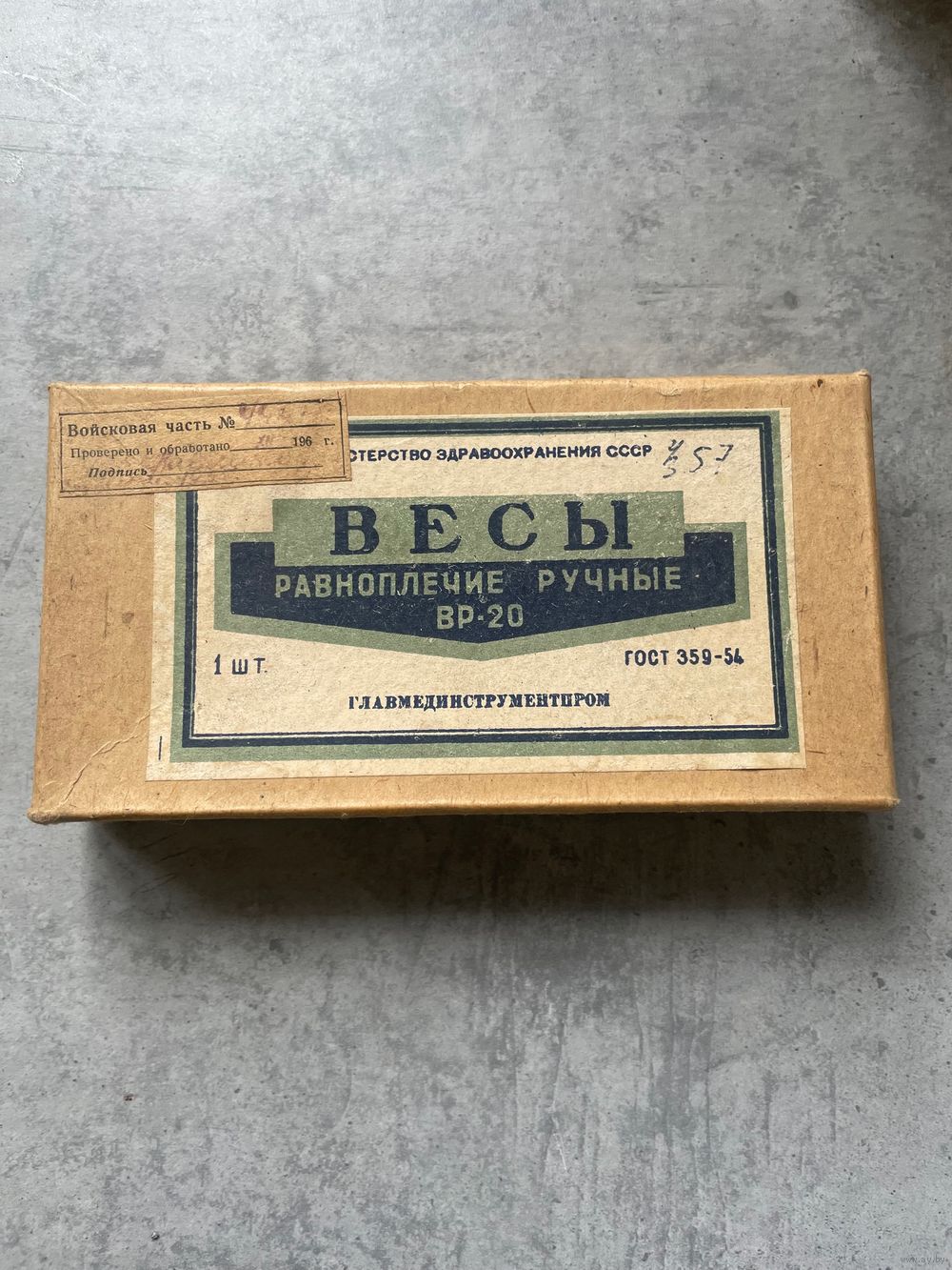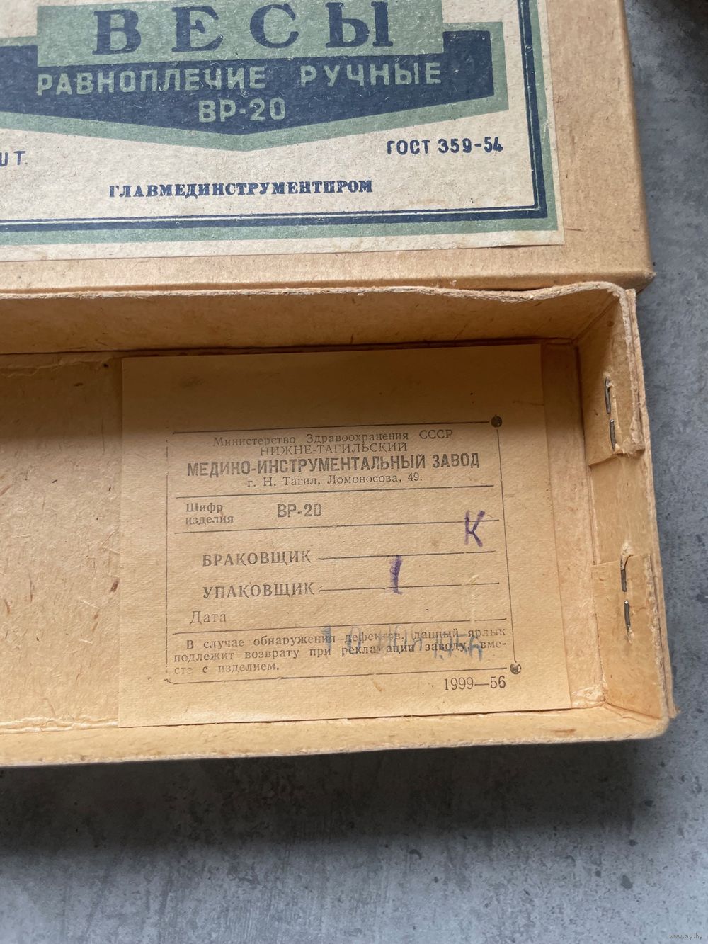 Весы равноплечные. Ручные. ВР - 20. СССР-РСФСР , 1956 год. ГЛАВМЕДИНСТРУМЕНТПРОМ. Коробка. Паспорт.