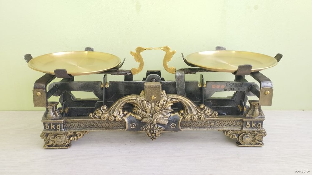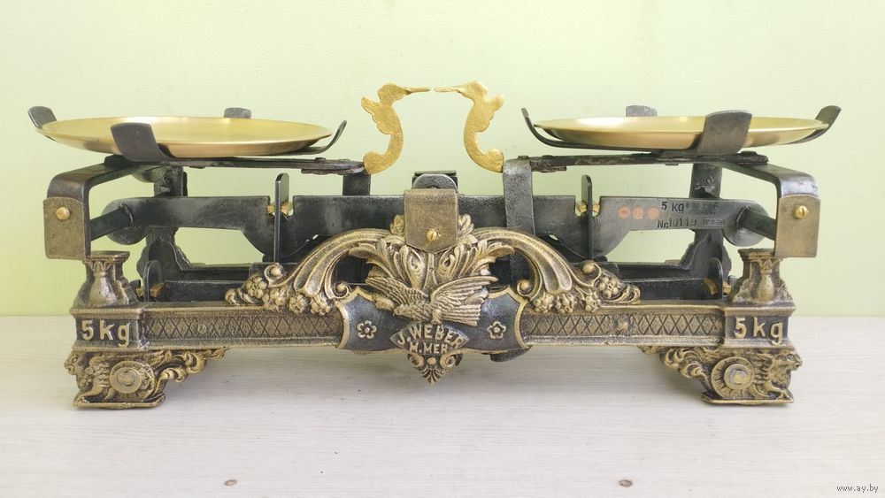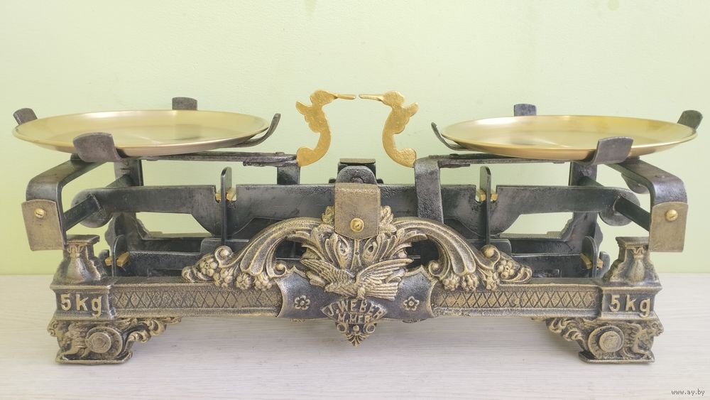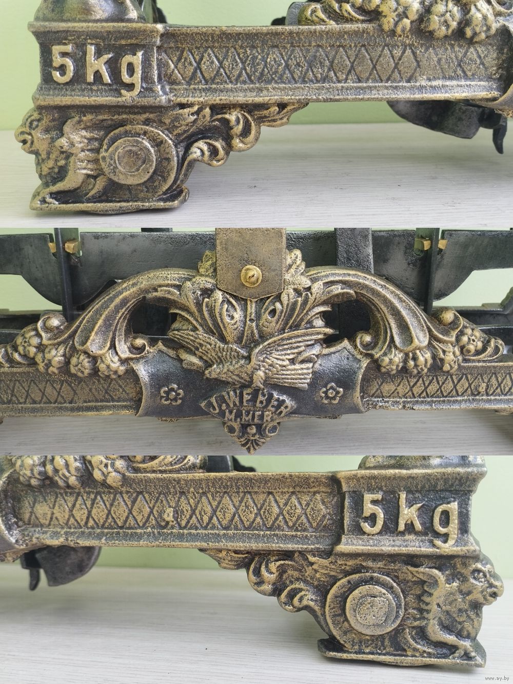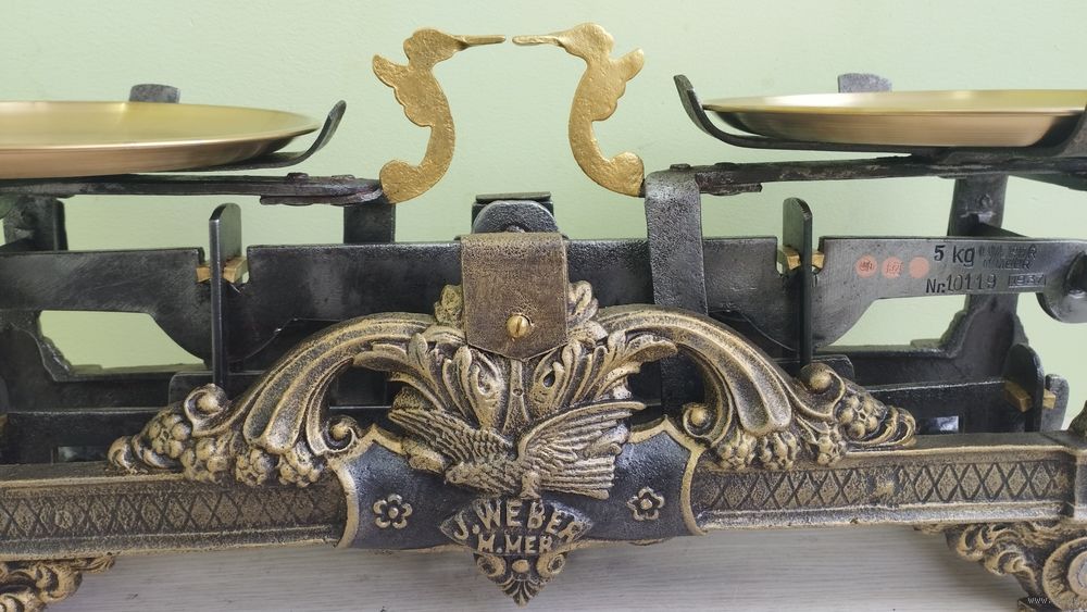Станина - чугунное художественное литье с логотипом производителя: "Weber - M.Mer". Ножки весов в виде мифических существ - Грифонов, они считаются стражами богатств и накоплений. Бытует древнее поверье - если в доме есть Грифон то жилище всегда будет под надёжной охраной. В православных храмах Вы можете повсеместно увидеть изображение Грифонов, хотя это ещё дохристианский символ.