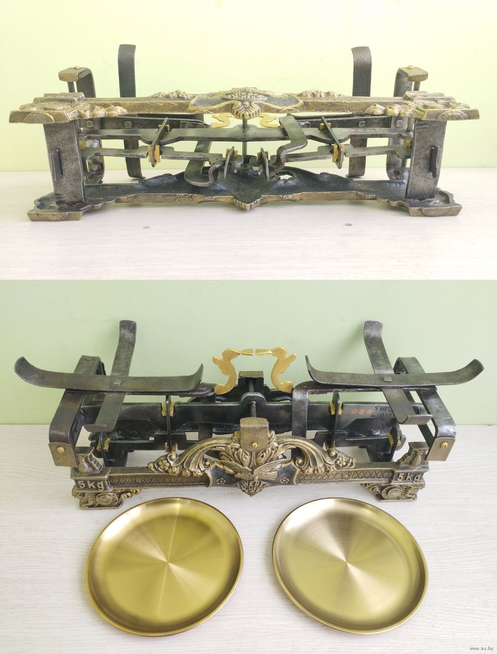 Проведена реставрация, весы без покраски, в чистом металле, в рабочем состоянии, откалиброваны.