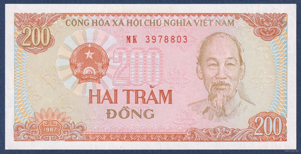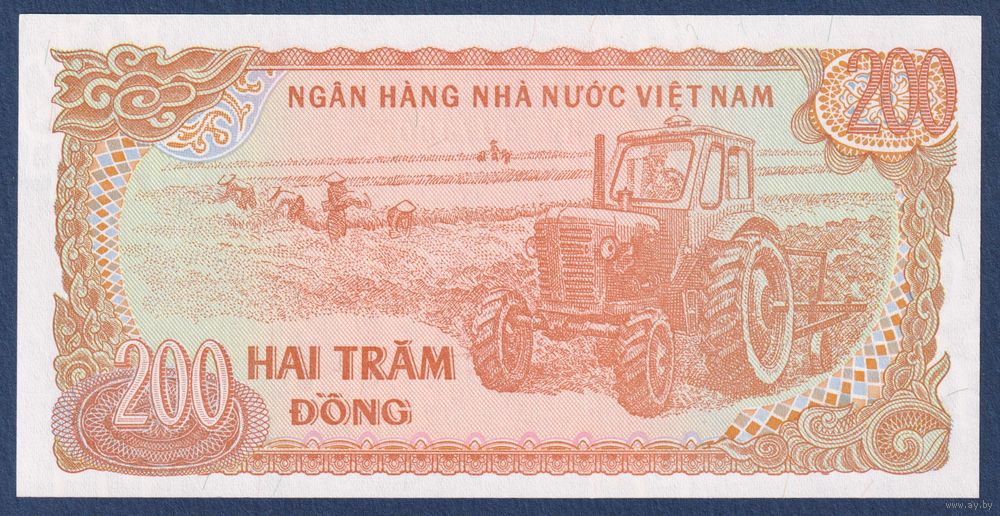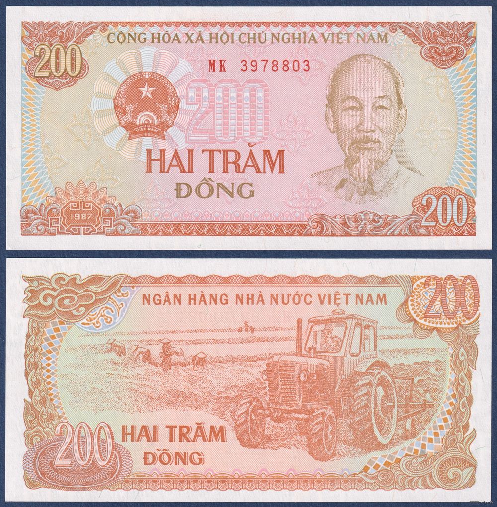 Вьетнам, 200 донгов 1987 г., P-100c (MK, Хо Ши Мин, трактор), UNC