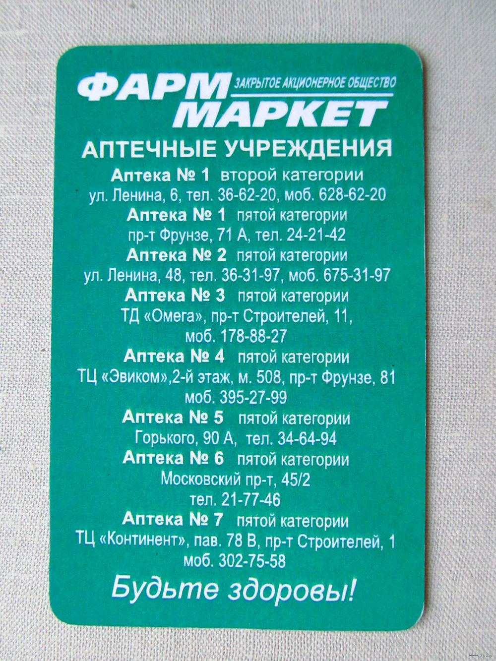ВФ 25-03 Дисконтная карта Фарммаркет Беларусь 2010-е