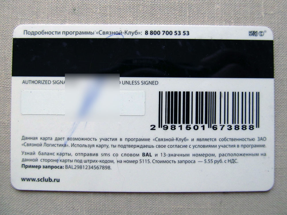 ВФ 25-03 Карта Связной Клуб Россия 2000-е