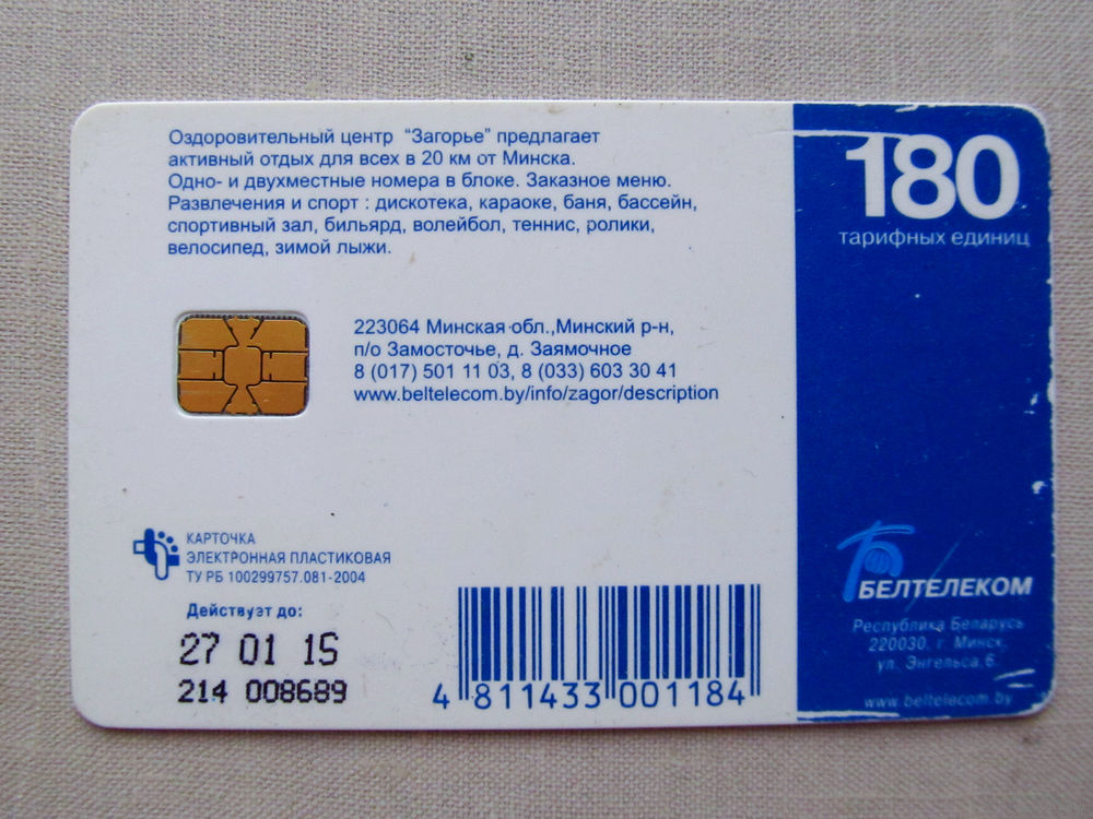 ВФ 25-03 Телефонная карта Белтелеком 180 единиц Загорье Беларусь 2010-е