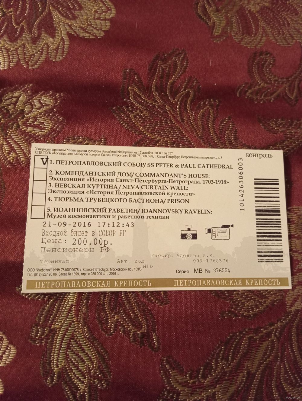 входной билет в Петропавловский собор в Санкт-Петербурге, являющийся частью Государственного музея истории Санкт-Петербурга.