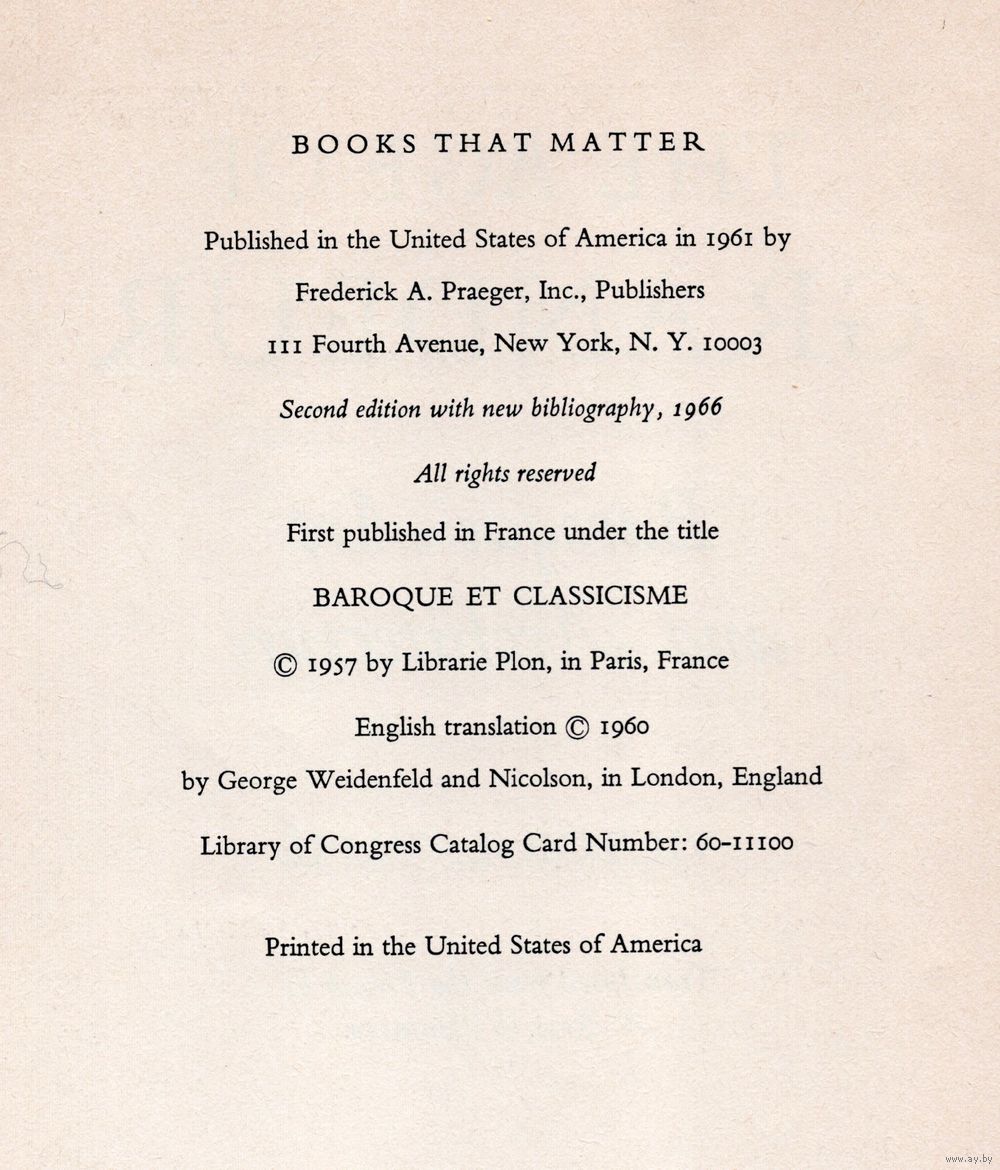 Victor Tapie. The Age of Grandeur: Baroque Art and Architecture. - New York, Frederick A. Praeger Publishers, 1961. - 294 p.