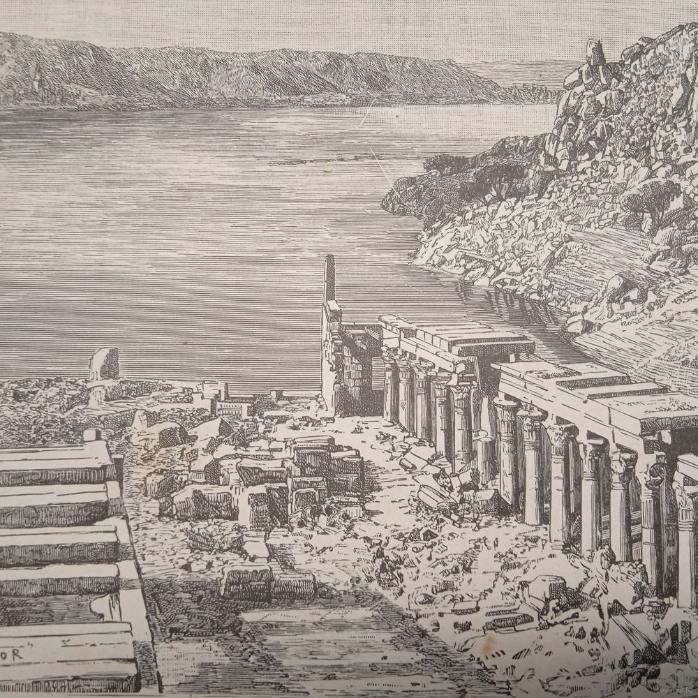 ВИДЪ НИЛА СО СТОРОНЫ ОСТРОВА ФИЛЭ. Гравюра конец 19в. 26х17см.