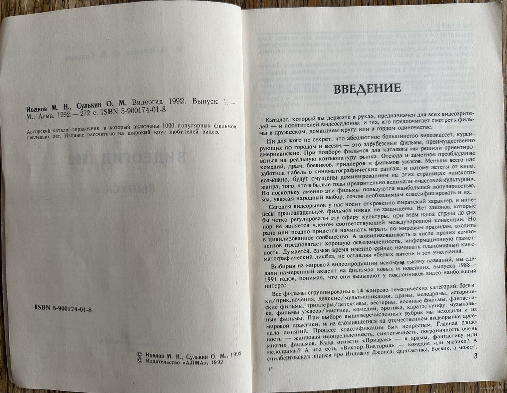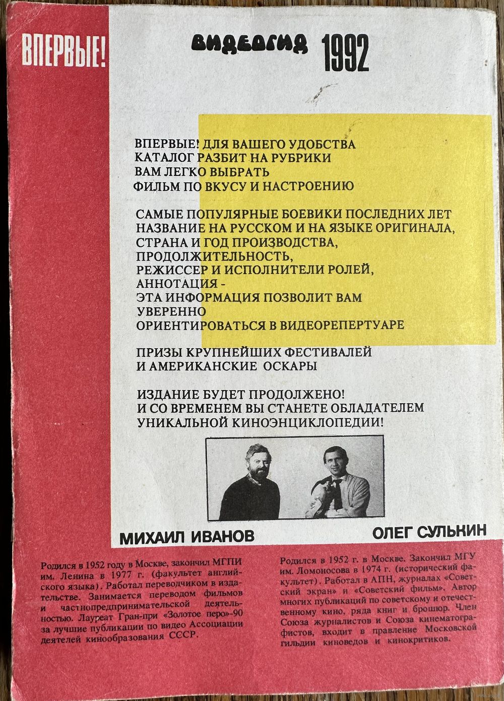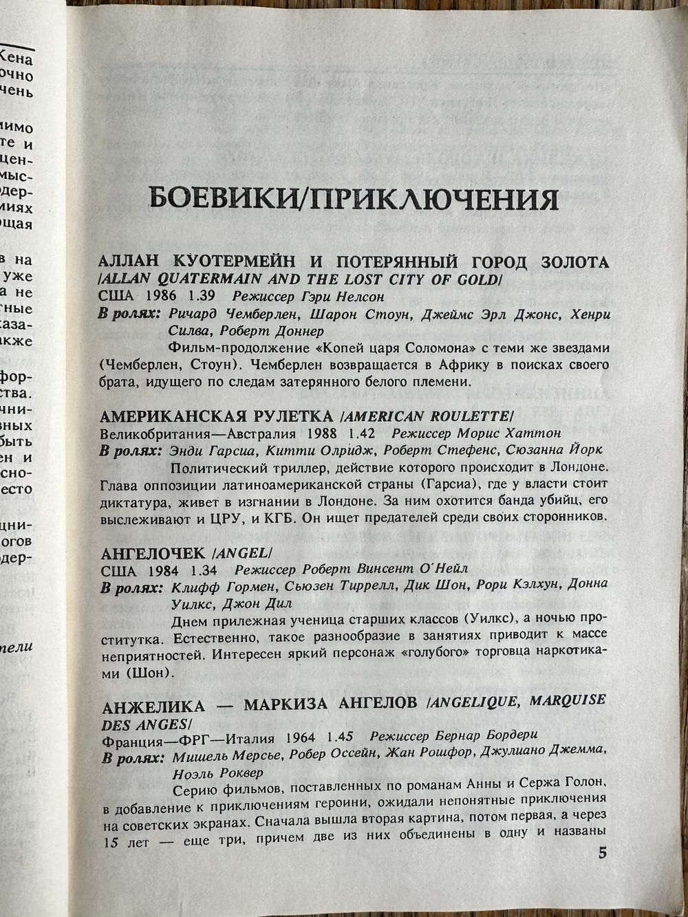 Это редкий справочник-путеводитель времён видеосалонов с кратким описанием содержания фильмов. Мягкая обложка, но состояние хорошее.