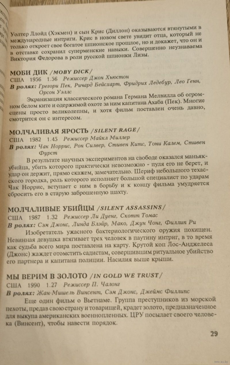 Авторский каталог-справочник, в который включены 1000 популярных фильмов последних лет. Все фильмы сгруппированы в 14 жанрово-тематических категорий: боевики/приключения, детские/мультипликация, драмы, мелодрамы, исторические фильмы, триллеры/детективы, вестерны, военные фильмы, фантастика, фильмы ужасов/мистика, комедии, эротика, каратэ/кунфу, музыкальные фильмы. При выборе вышеперечисленных рубрик составители исходили и из мировой практики, и из сложившегося на отечественном видеорынке арсенала понятий. Издание рассчитано на широкий круг любителей видео.