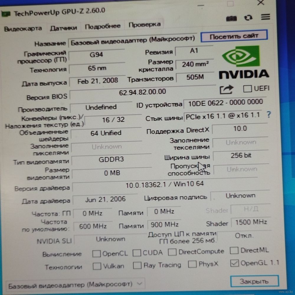 | Б/У- рабочая!(Комп был рабочим , но очень давно - оправлен в долгое хранение и только теперь дошли руки разгребать ненужное! Кулер не родной ( с проц)- приколхожен , но охлаждает! | |