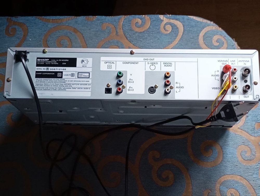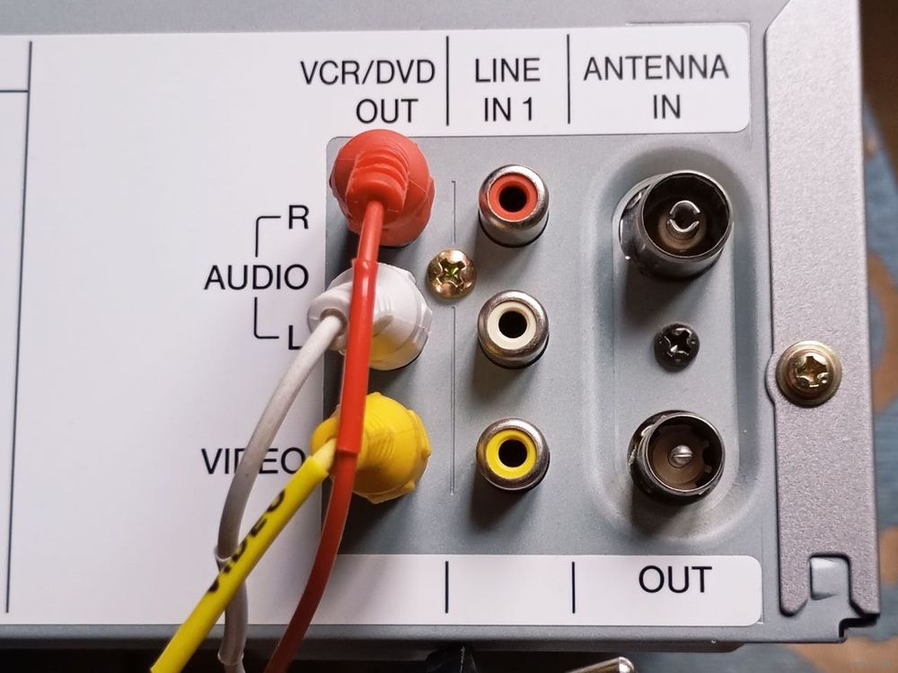 Разъемы для подключения: выход аудио цифровой коаксиальный, выход аудио цифровой оптический, выход видео компонентный, выход видео композитный, S-video, вход видео композитный, вход аудио стерео