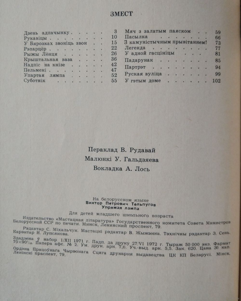 Віктар Цельпугоў. Упартая лямпа: апавяданні: для малодшага школьнага ўзросту. Мінск : Мастацкая літаратура, 1972 г. 103 с. Цверды пераплет.