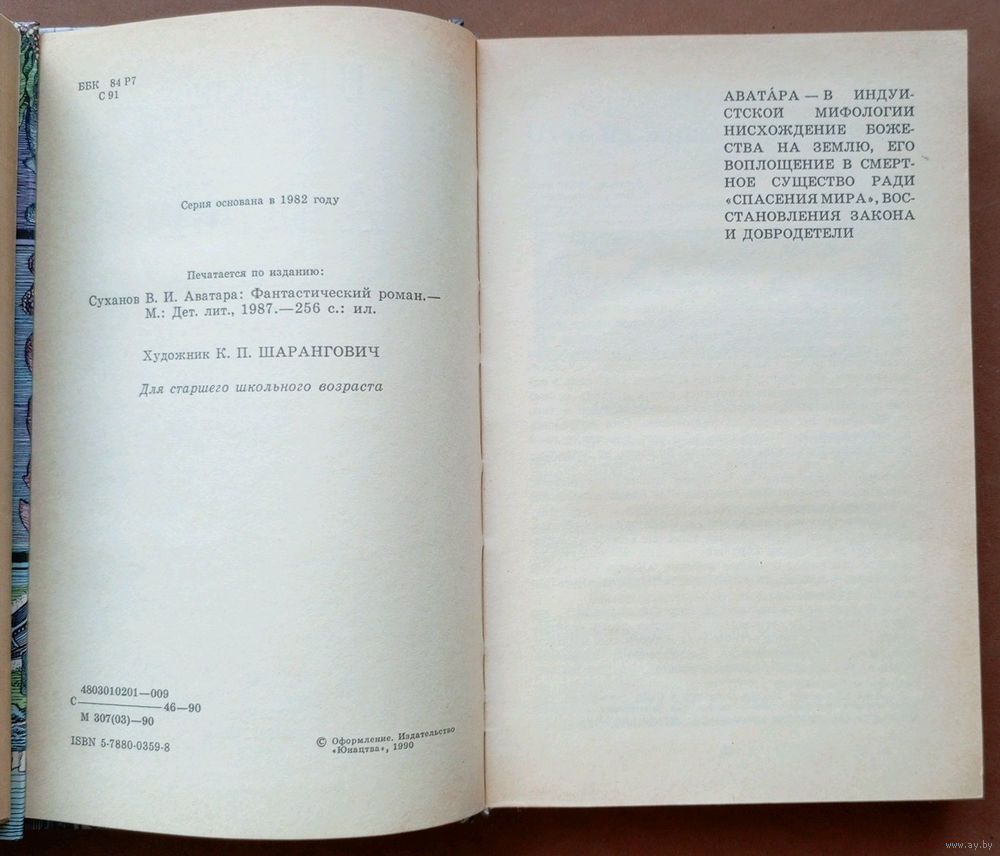Виктор Суханов - "Аватара". Серия "Библиотека приключений и фантастики". Юнацтва, 1990г. Художник К.П. Шарангович.