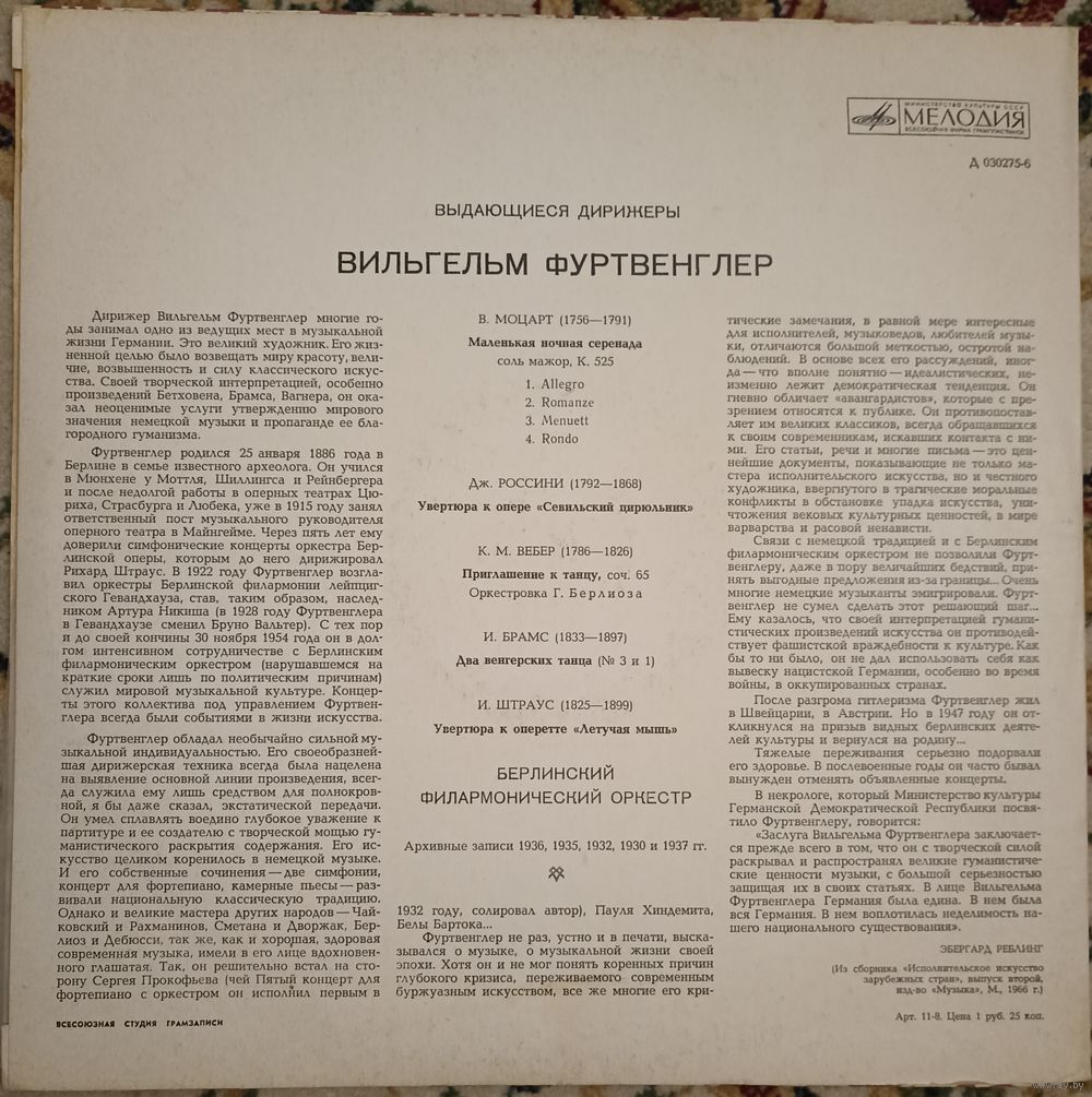 Вильгельм Фуртвенглер - Моцарт / Россини / Вебер / Брамс / И. Штраус.
