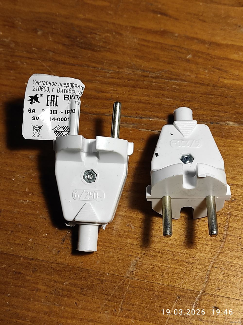 Вилка сетевая без з/к белая, РБ, лот 2 штуки