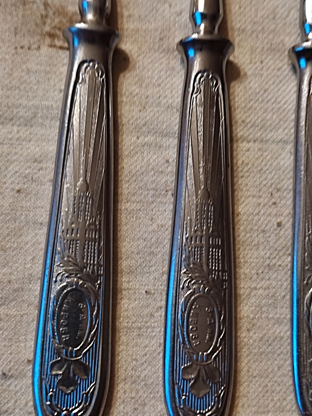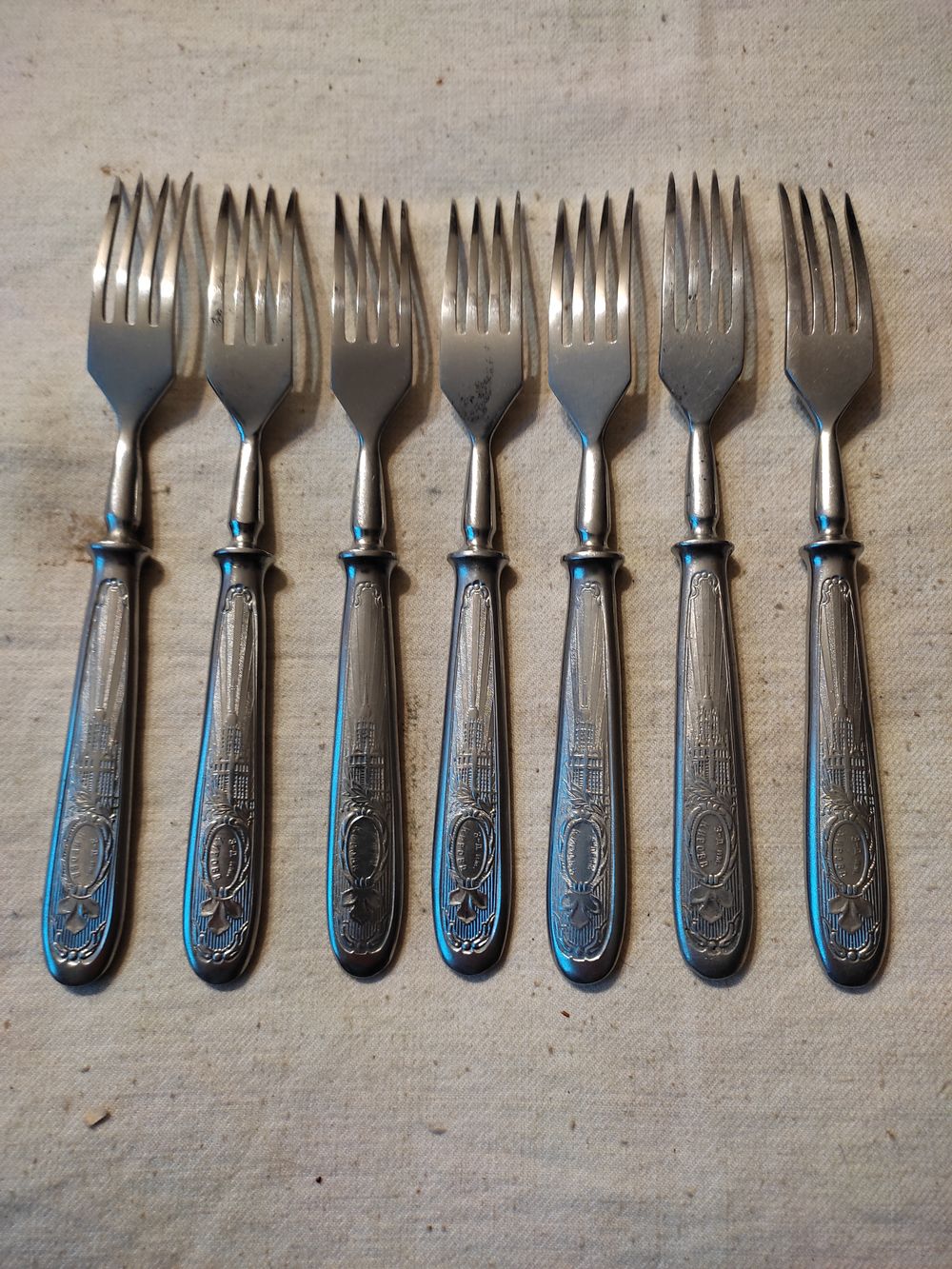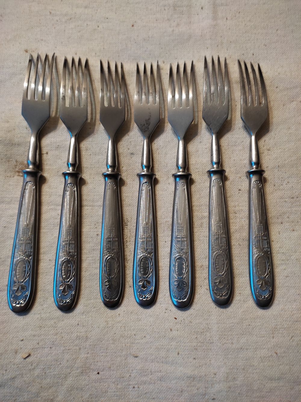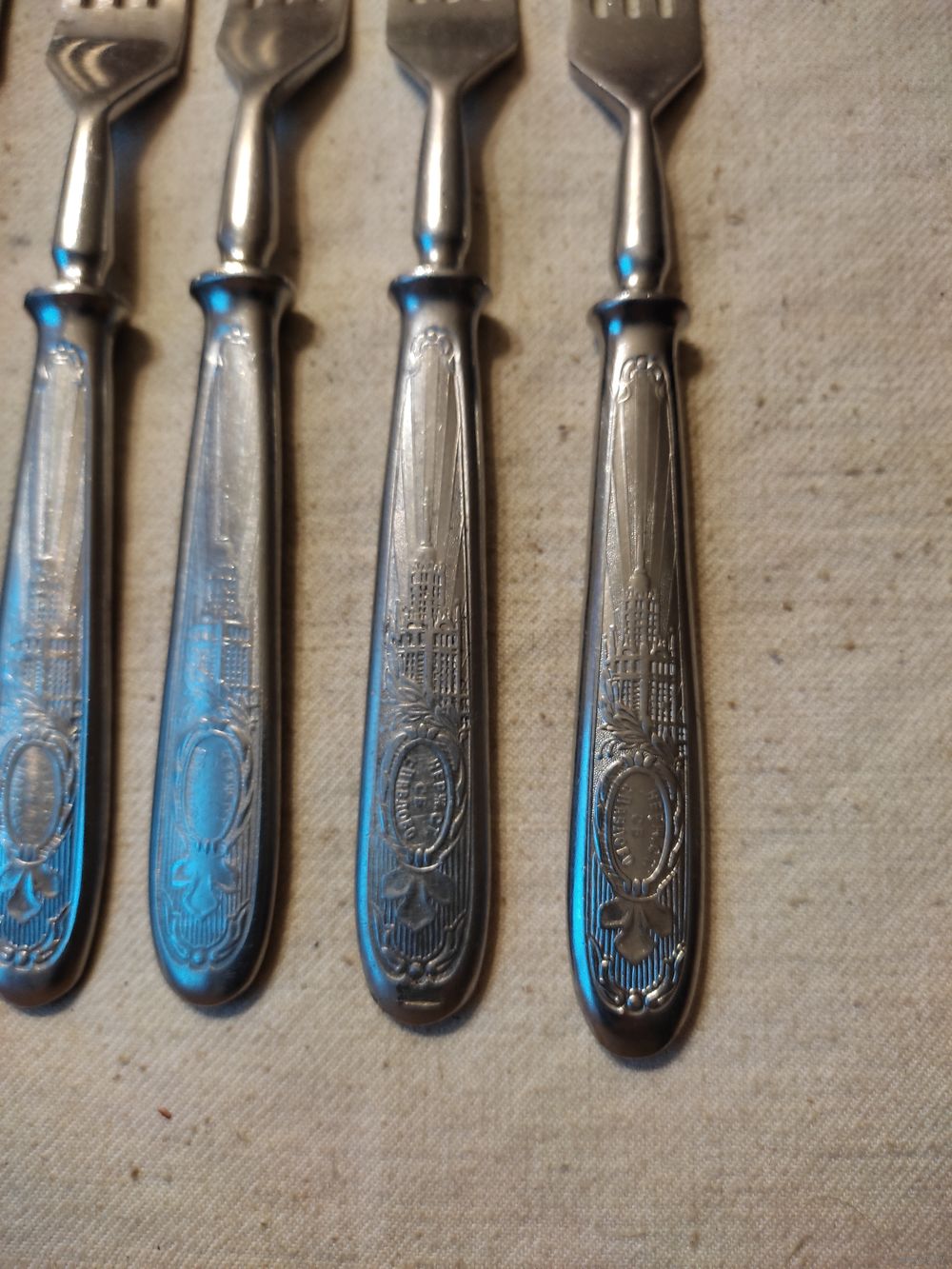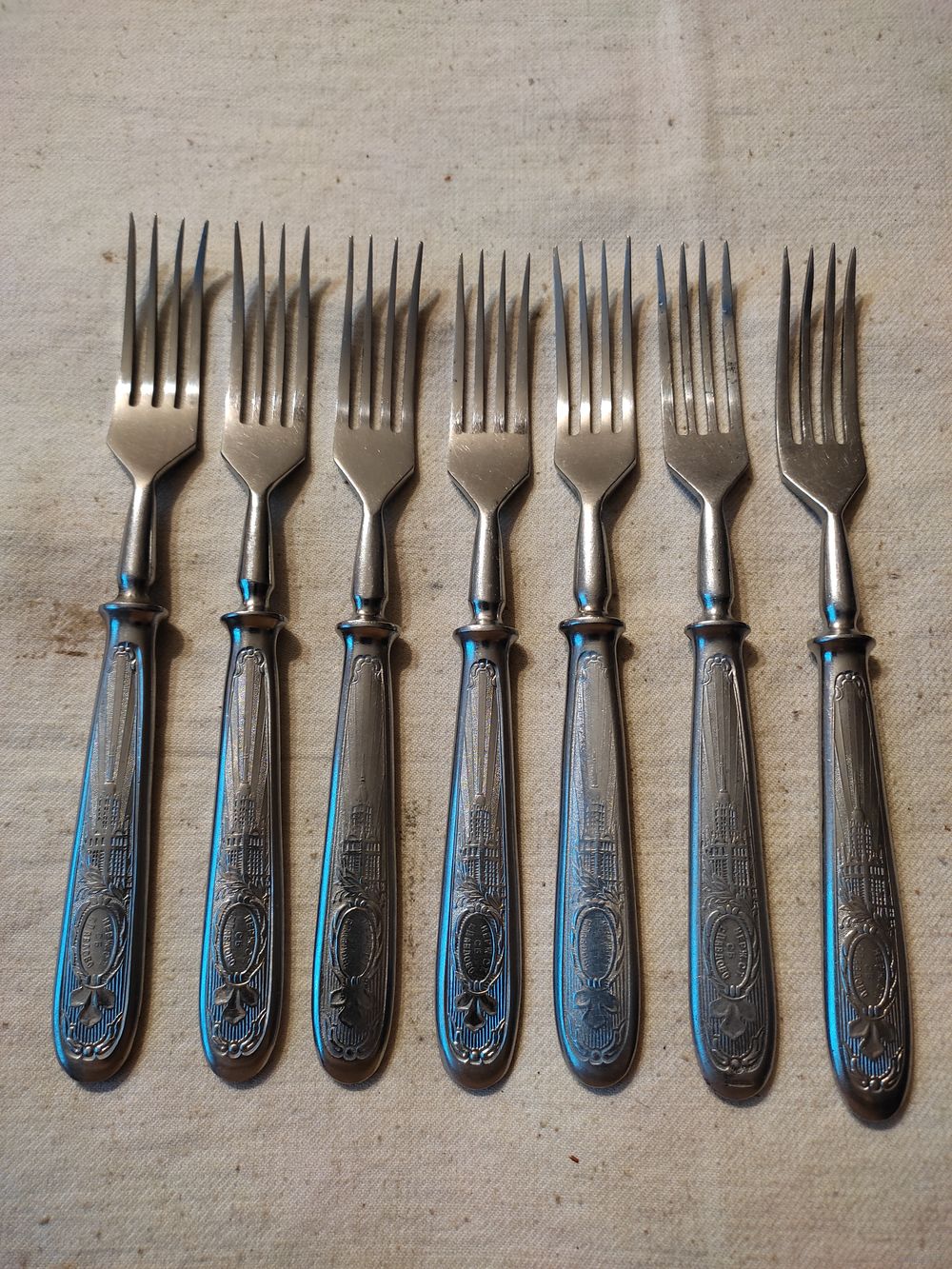 Вилки СССР , столовые , агитация , нержавейка , завод им. Кирова , г. Павлово. Комплект 6 шт. ( + 1 шт. - в подарок ). Длина вилки - 18,5 см , вес одной вилки - 67 гр. Хорошее состояние , чисто вымыты. Цена за комплект. Высылаю : Белпочта , Европочта.