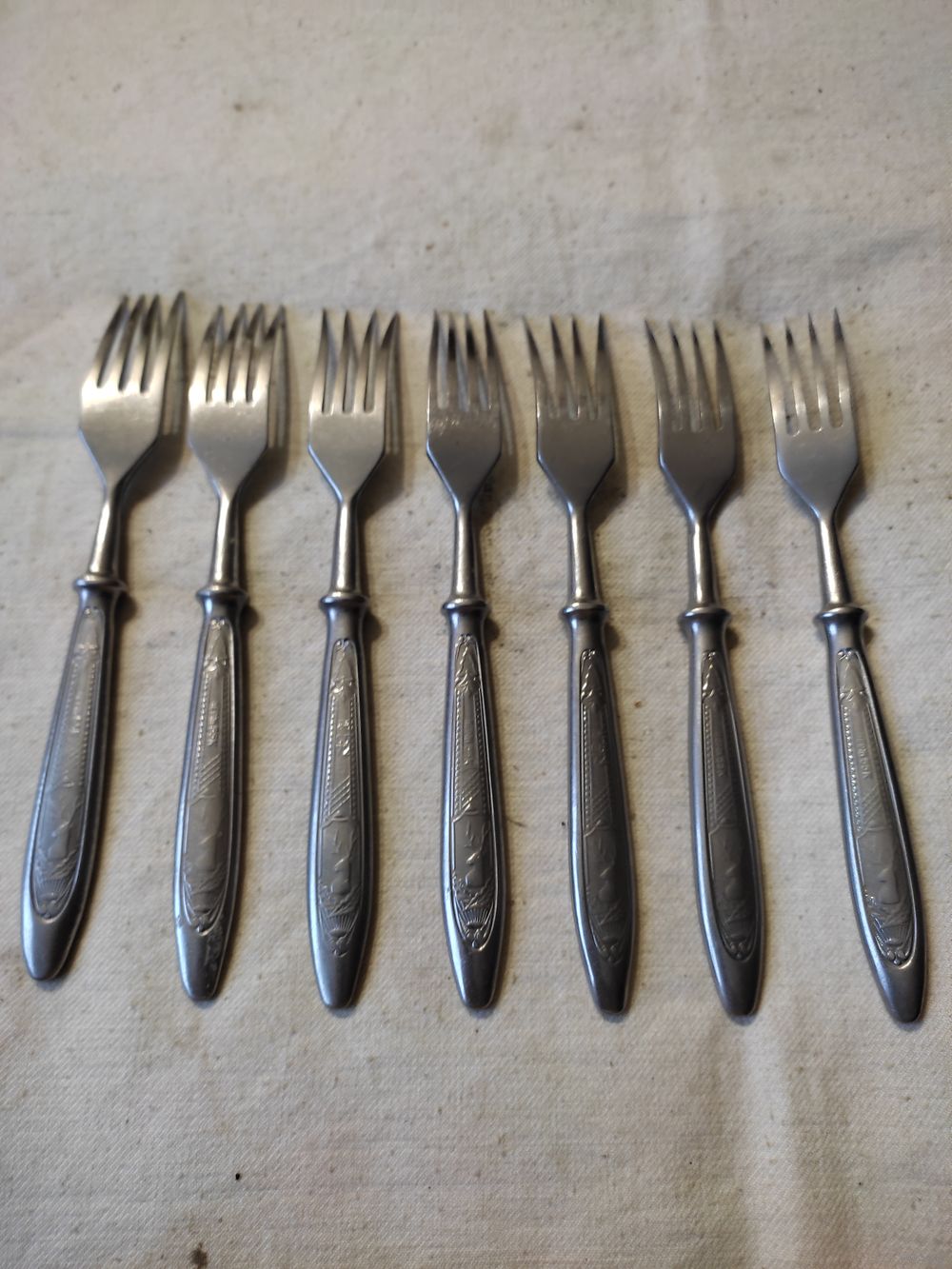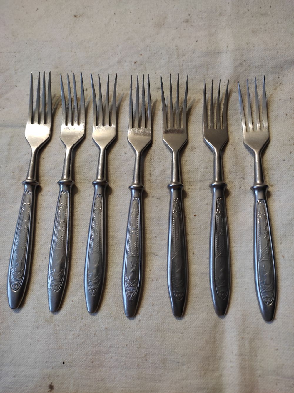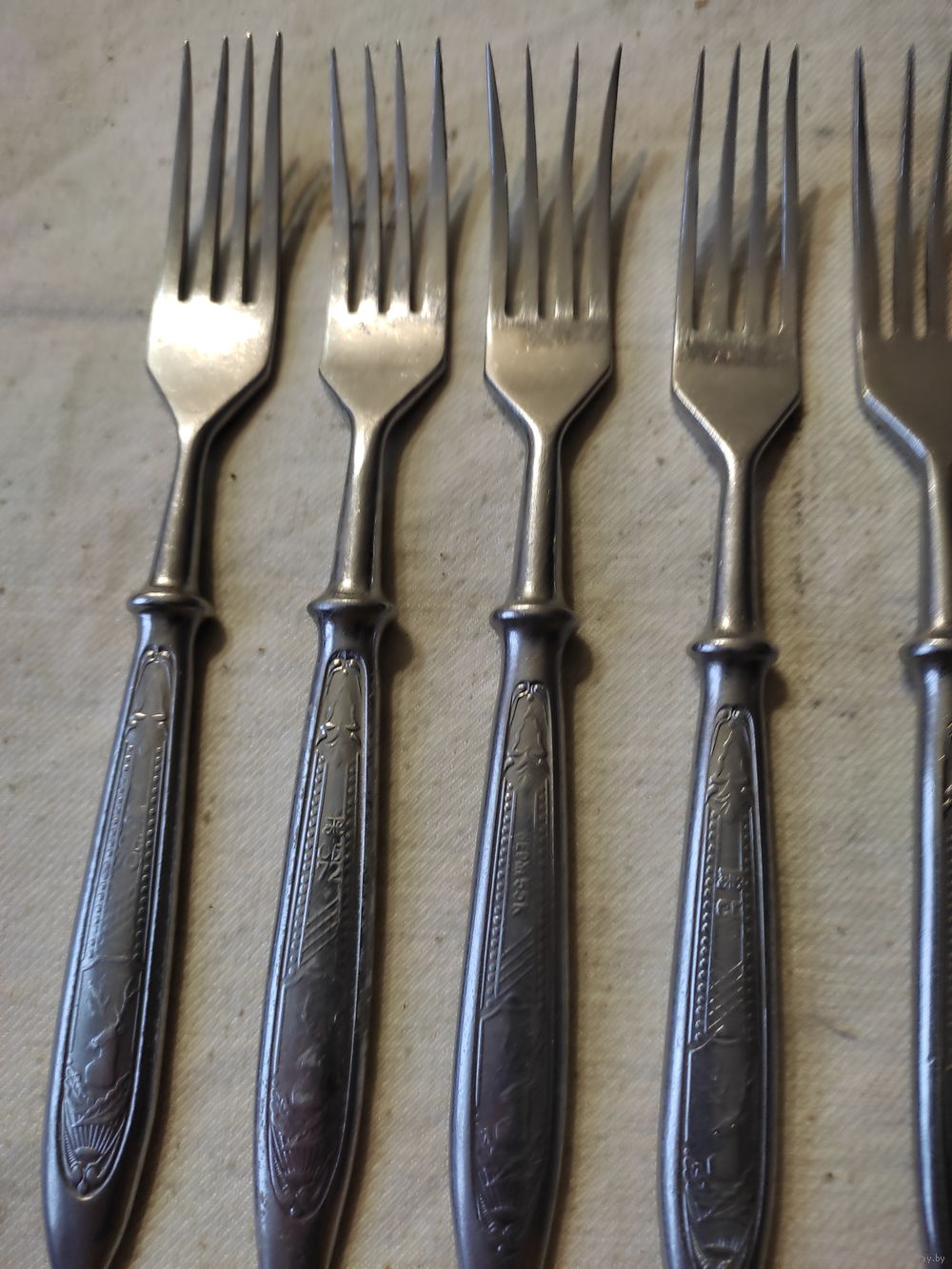 Вилки СССР , столовые , ОЛЕНЬ , нержавейка , комплект 6 шт. ( + 1 шт. - в подарок ). Длина вилки - 18,5 см , вес одной вилки - 65 гр. Хорошее состояние , чисто вымыты. Цена за комплект. Высылаю : Белпочта , Европочта.
