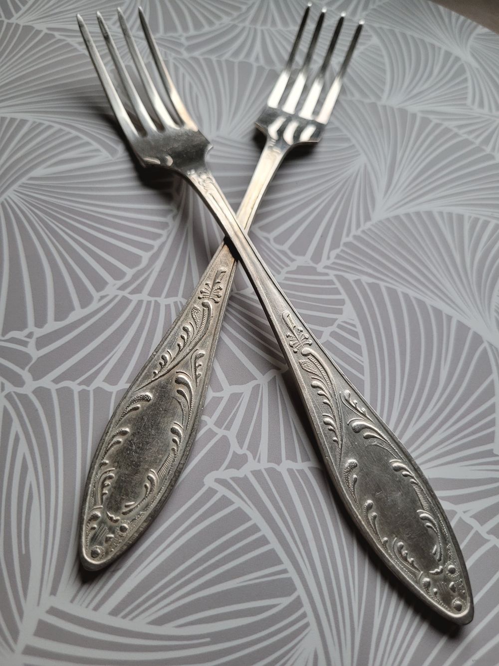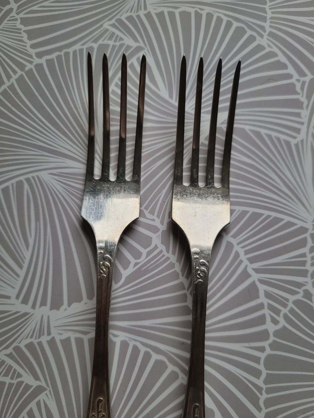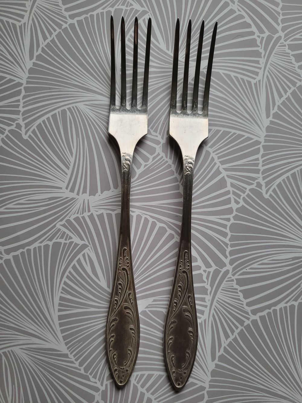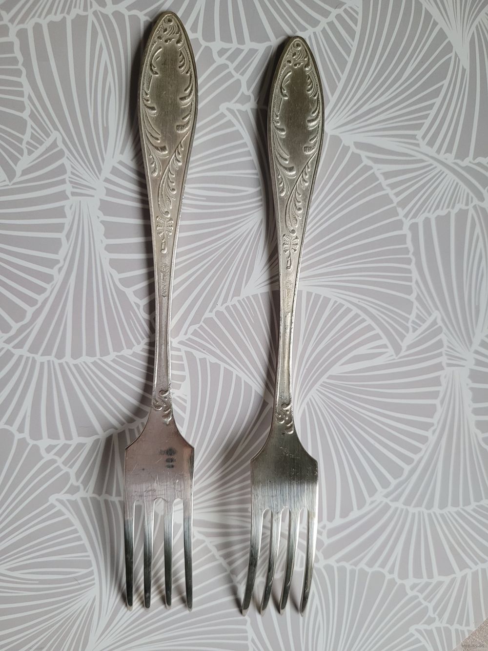 Вилки столовые "Пламя", 20,5 см, мельхиор, покрытие серебро. Оленегорский механический завод. Клеймо олень, МНЦ, 1970-90 гг. В отличном состоянии. Цена за 2 шт.