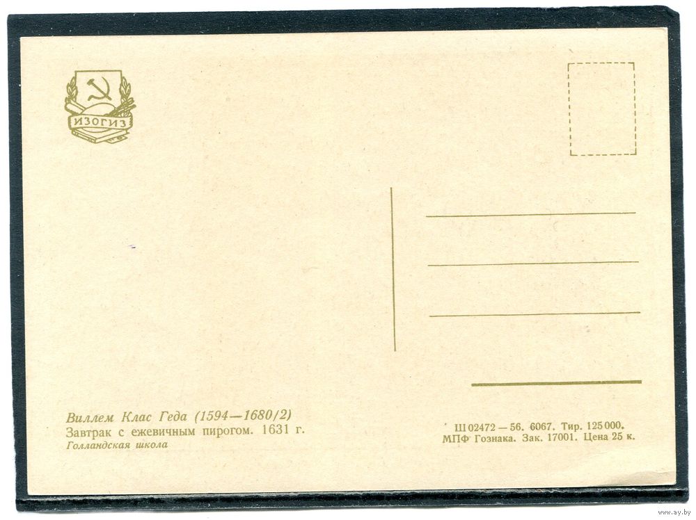 Виллем Клас Геда. Завтрак с ежевичным пирогом. Гаш.1956