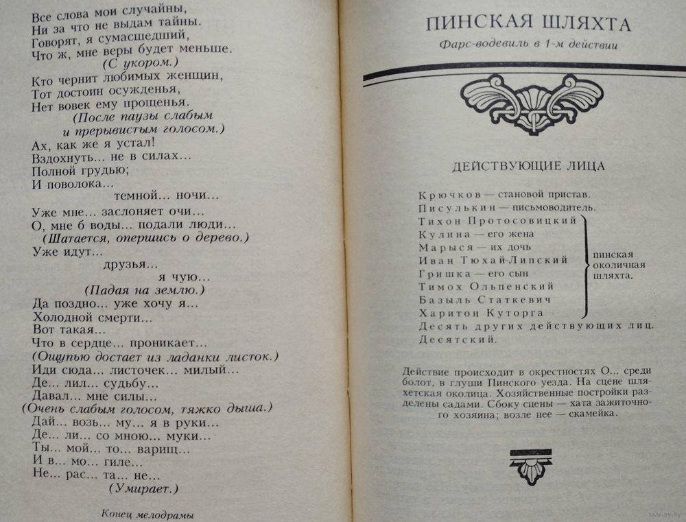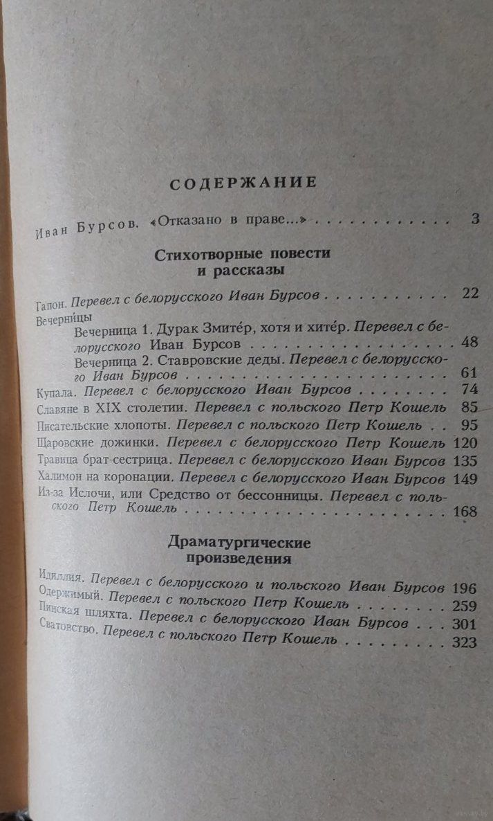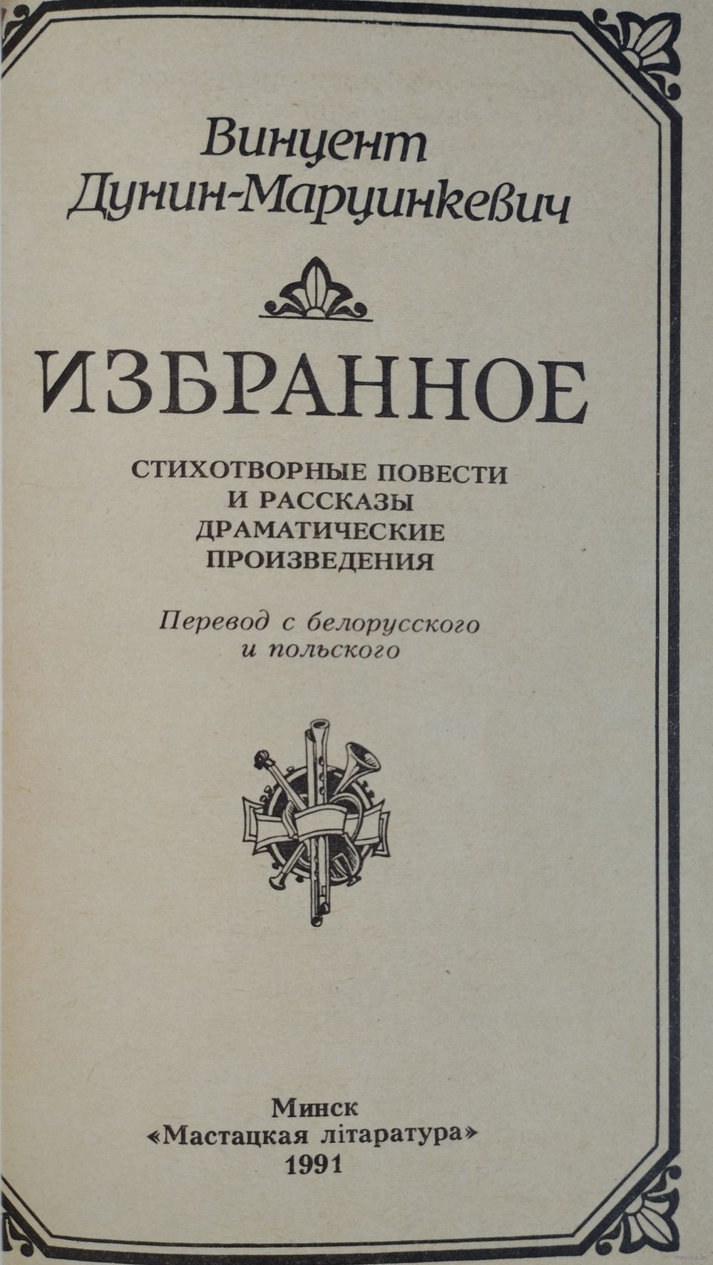 Стихотворные повести и фарс-водевиль "Пинская шляхта" В. Дунина-Марцинкевича на русском языке издаются впервые.