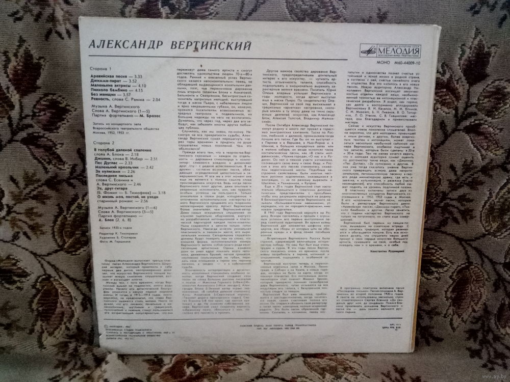 Виниловая пластинка АЛЕКСАНДР ВЕРТИНСКИЙ.