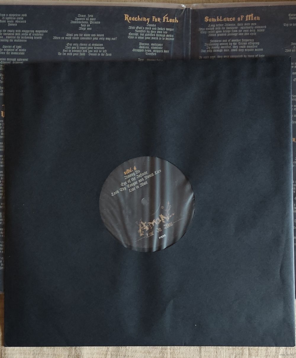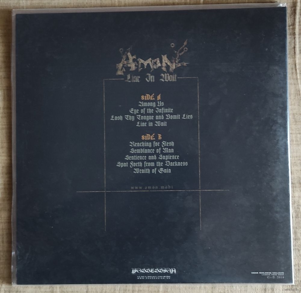 Виниловая пластинка штатовской дэт-метал группы Amon, альбом -Liar In Wait- 2012 года, релиз 2014 в плотном двойном разворотном конверте. Довольно редкий винил, кстати.