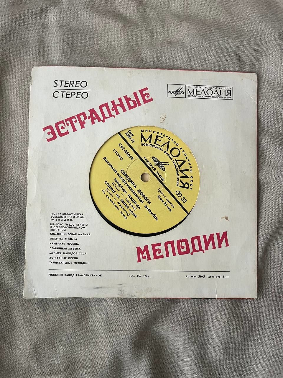 Виниловая пластинка ЭСТРАДНЫЕ МЕЛОДИИ ретро винтаж