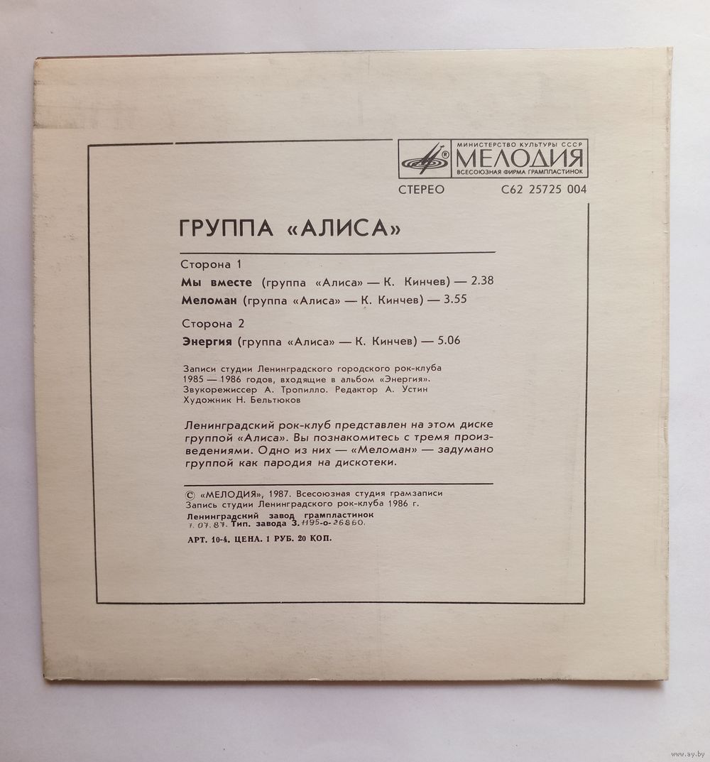 Виниловая пластинка Группа АЛИСА. Миньон. 7 дюймов.