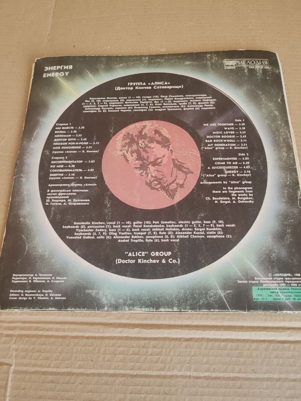 Очень интересная пластинка с молодым Кинчевым и классным подвижным роком. Приглашённый гость Борис Гребенщиков. Советую. По качеству пластинки: есть микроцарапины и небольшой скрип по воспроизведение, но пластинка не заедает (лично проверяю каждую пластинку перед описанием)