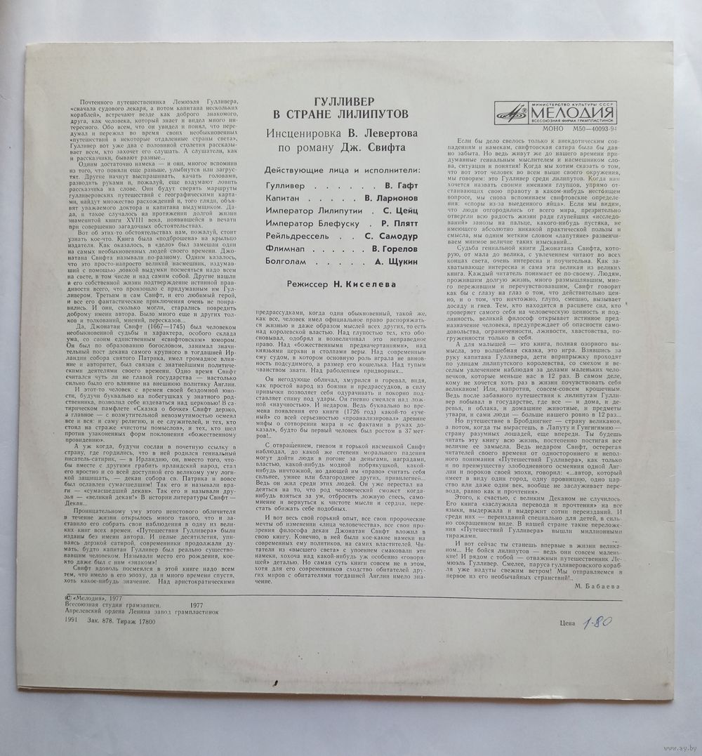 Виниловая пластинка Гулливер в стране лилипутов. Инсценировка.
