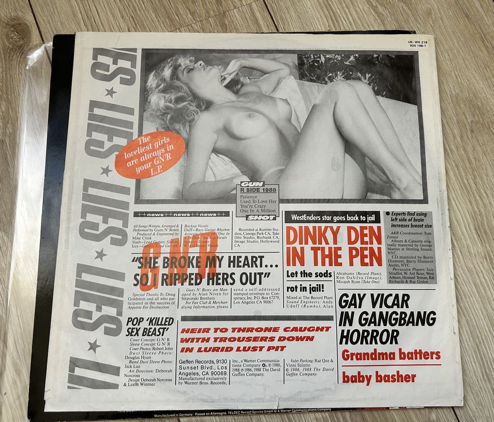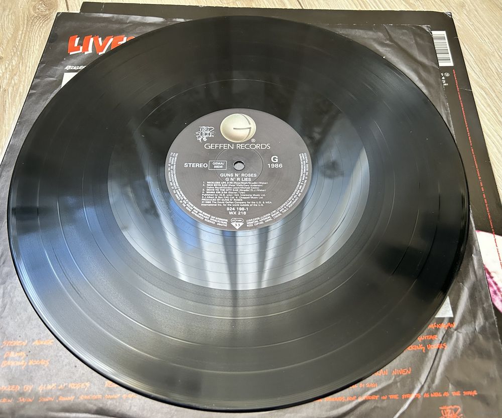 Виниловая пластинка Американской Хард-рок группы Guns n’ roses альбом Lies первый европейский пресс 1988 года. Состояние винила/обложки/лирического конверта: nm-/ex ( есть небольшое повреждение, но не сквозное)/ex.