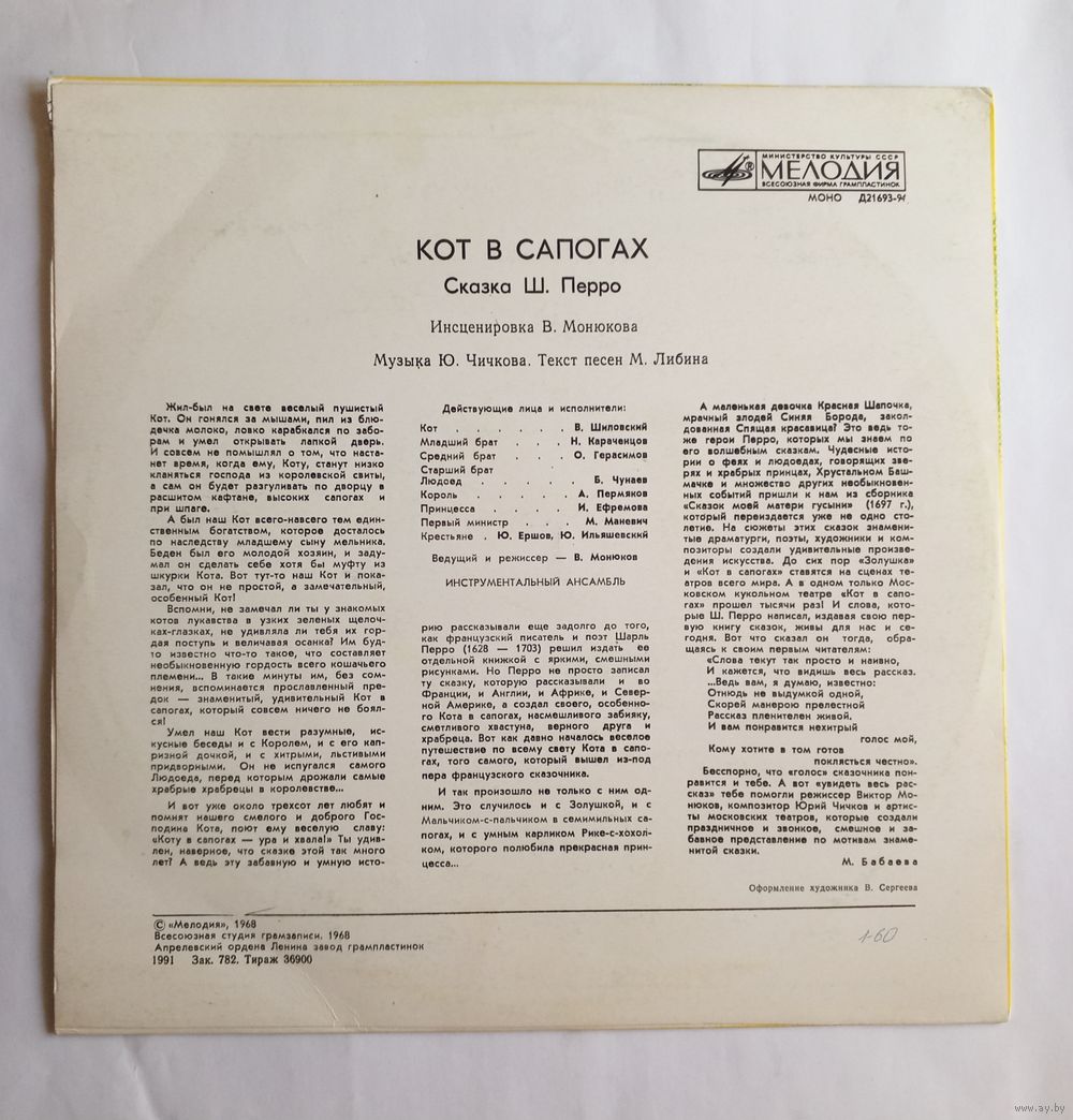 Виниловая пластинка Кот в сапогах. Инсценировка.