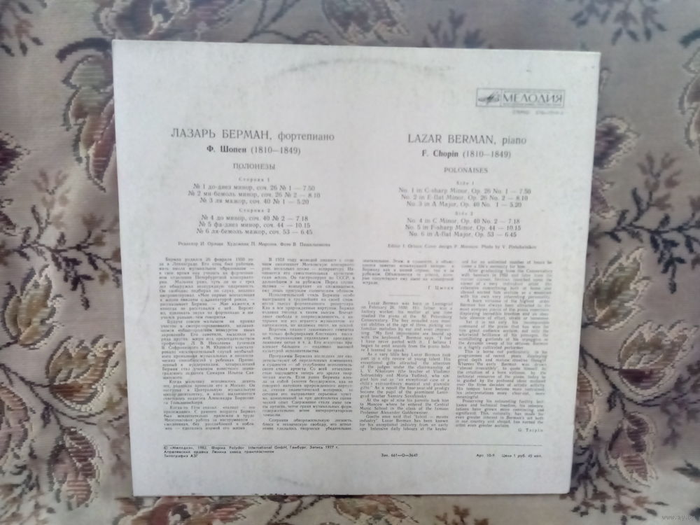 Виниловая пластинка ЛАЗАРЬ БЕРМАН. Ф. Шопен. ПОЛОНЕЗЫ.