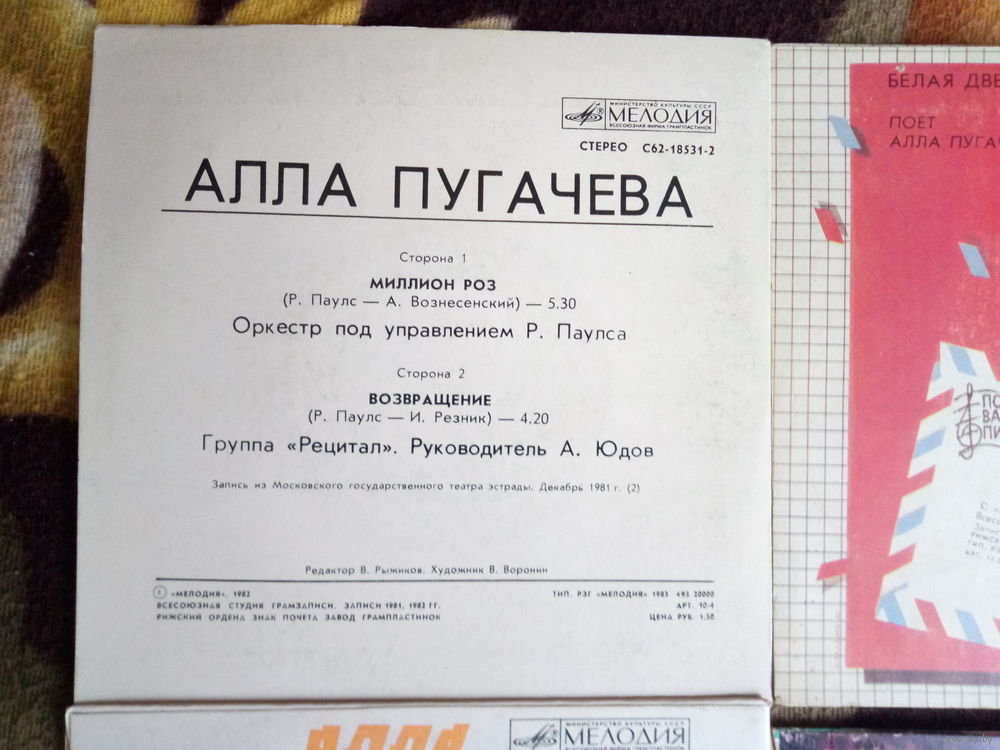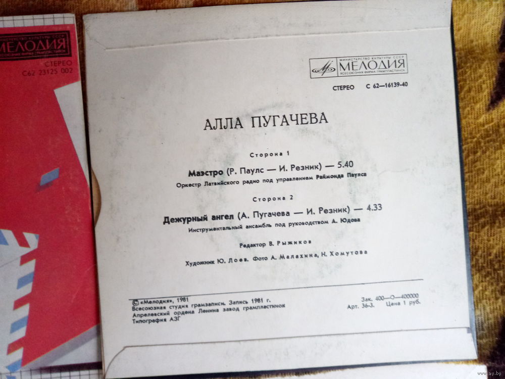 Виниловая пластинка. Миньон. 7" АЛЛА ПУГАЧЕВА.