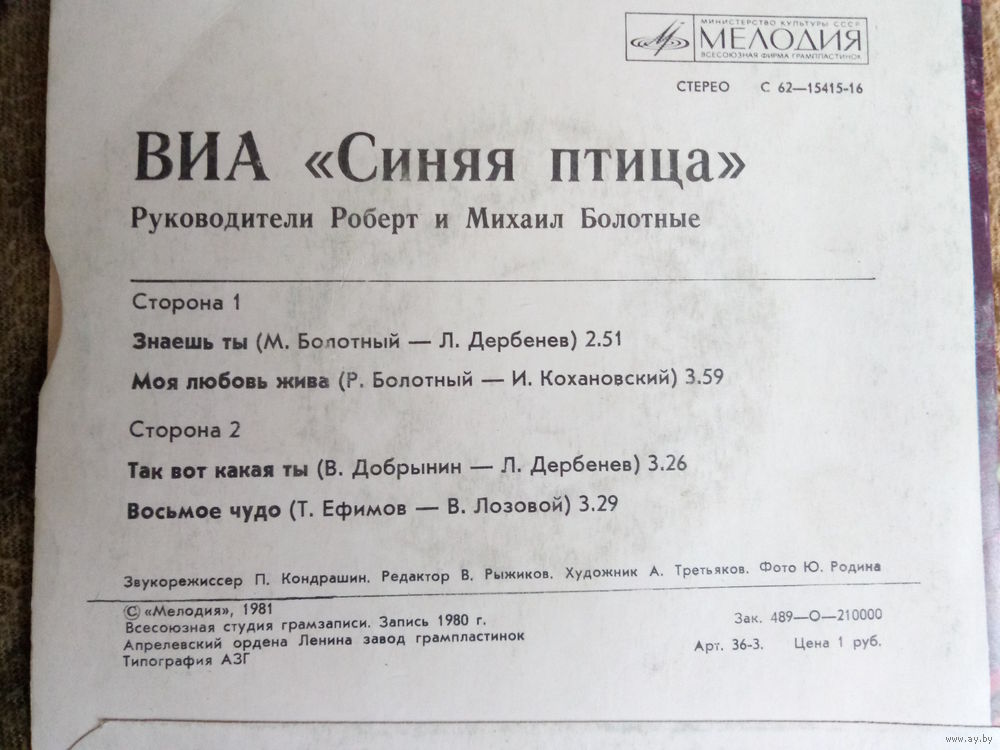 Виниловая пластинка. Миньон. 7" Синяя Птица.