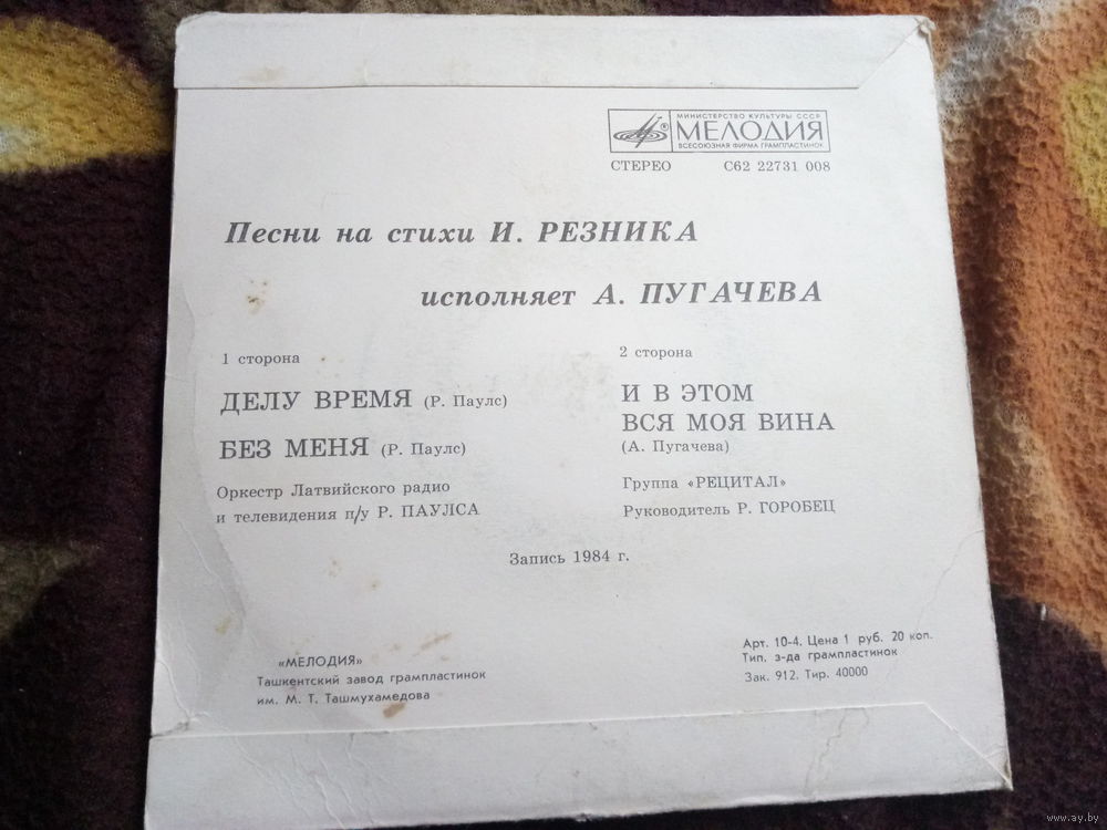 Виниловая пластинка. Миньон. Алла Пугачева. 7"