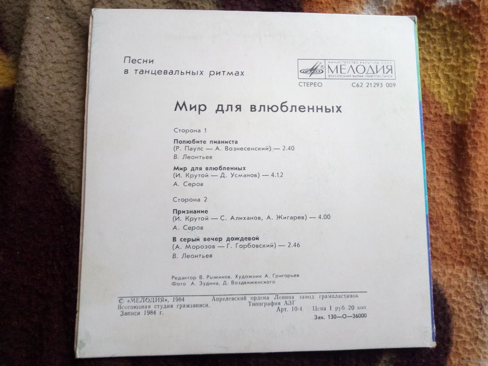Виниловая пластинка. Миньон. Мир для влюбленных. 7"