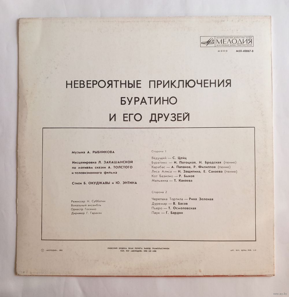Виниловая пластинка Невероятные приключения Буратино и его друзей. Инсценировка. 1982 год.
